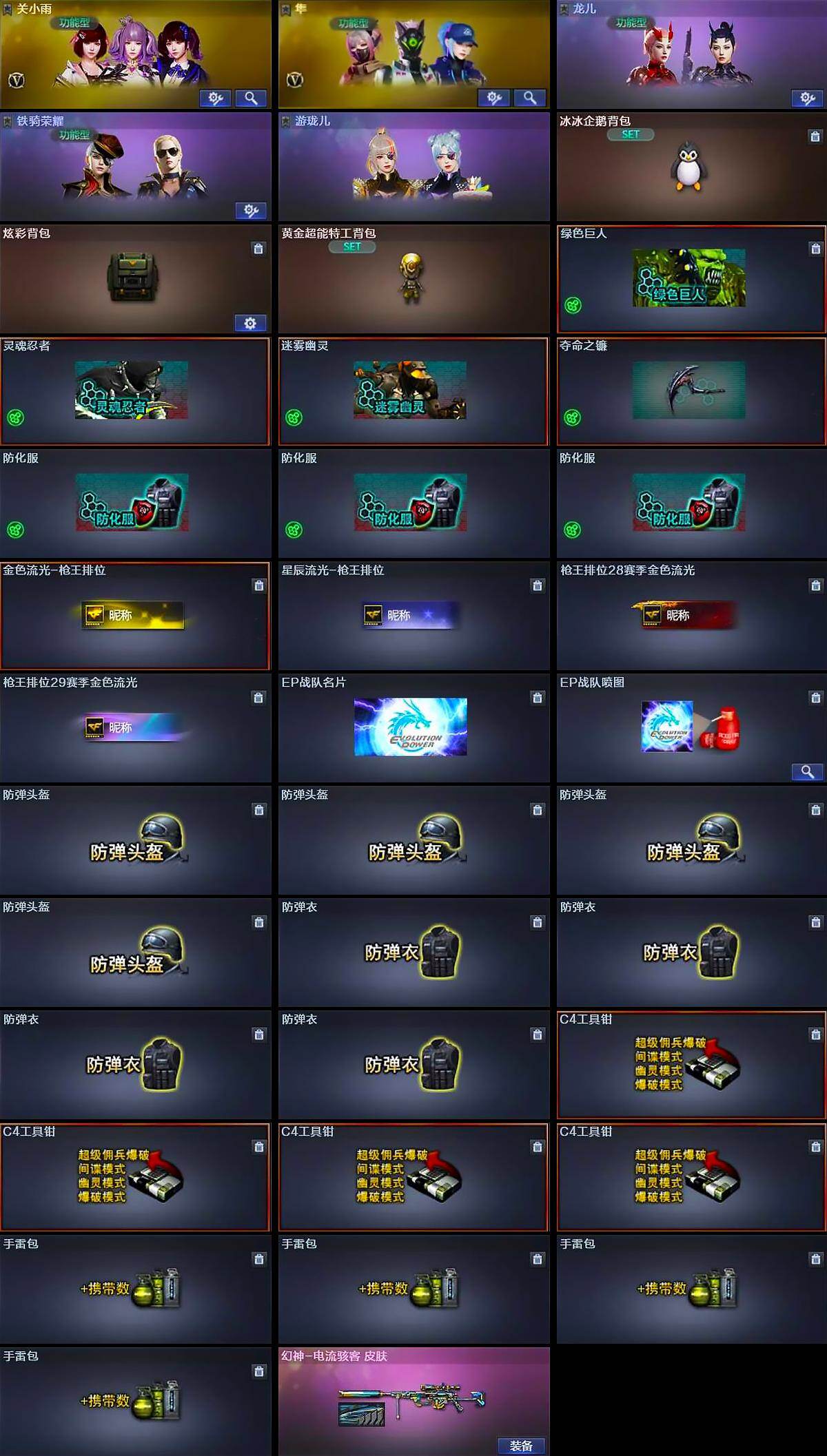 【道具】:冰冰企鹅背包,炫彩背包,黄金超能特工背包,绿色巨人,灵魂忍者,迷雾幽灵,夺命之镰,防化服*3,金色流光-枪王排位,星辰流光-枪王排位,枪王排位28赛季金色流光,枪王排位29赛季金色流光,EP战队名片,EP战队喷图,防弹头盔*4,防弹衣*4,C4工具钳*4,手雷包*4