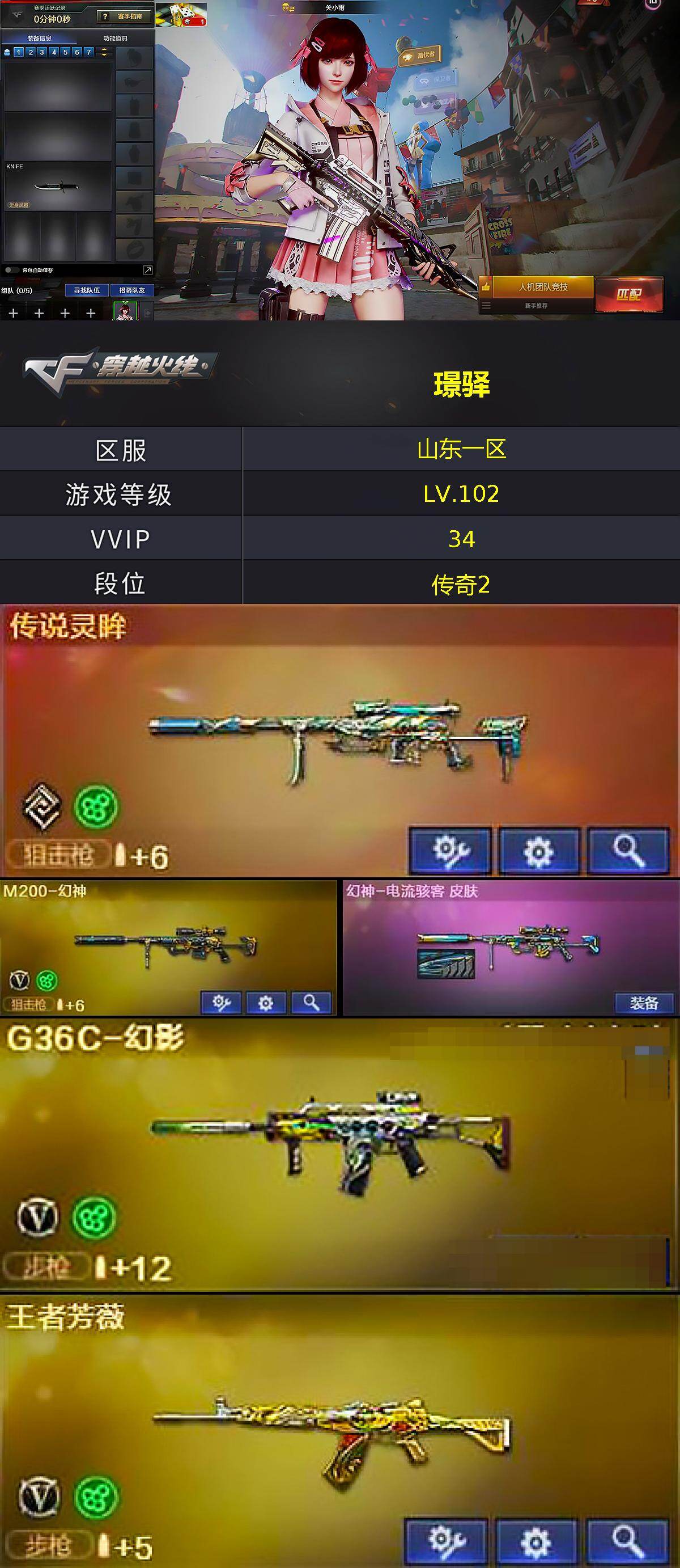 - [16028064]湖北一区-107V-8王者-2炫金 【传说武器】:传说光耀 【热门武器】:传说光耀,QBZ03-金色蔷薇,Scar Light-白虎,HK417-朱雀,金色蔷薇-古蛇迷踪,修罗-古蛇迷踪,M200-竞技荣光,死亡之眼,王者炎心,Kar98K-星神,M4A1-黑骑士,汤姆逊-烈龙*6,RPK-盘龙,斯泰尔-蝴蝶,裁决-雪莉杨,火麒麟-绝迹,USP-雷暴,COP-堕天神,沙鹰-修罗 【王者炫金武器】:王者炎心,王者之势,王者之心,王者雷怒,炫金黑龙,炫金毁灭 【音效卡】:AK47-火麒麟音效卡,M4A1-雷神音效卡,M4A1-黑骑士音效卡,Barrett-毁灭音效卡 【皮肤】:金色蔷薇-纸灯龙皮肤,金色蔷薇-破浪逐光 皮肤,星神-璀璨皮肤,雷神-虎将,雷神-耀金皮肤,雷神-冠军之魄,雷神-传奇N9,雷神-航星皮肤,雷神-源计划2.0专属 皮肤,雷神-化蛇 皮肤,AK47-火麒麟-传奇EVEN,火麒麟-轻羽皮肤,火麒麟-心动糖果,毁灭耀金皮肤,M4A1-千变-孔明皮肤,黑骑士-冠军之势,黑骑士-破界 皮肤,玫瑰精灵-蓝调梦幻 皮肤,AWM-天龙-传奇70KG,炼狱-月 皮肤,修罗-能量核心,屠龙-破浪逐光 皮肤,麒麟刺-月皮肤 【角色】:葵,电竞教官-云悠悠,王者-瞳-闭月羞花,王者樱-热浪之夏,王者春,蛇隐宗,炽天使,芳心审判者,风暴女,兰-海滩派对,0号玩家,灵狐-花神,麻雀,曼陀罗-礼服,潘多拉-X,潘多拉-甜心教官,邱刚敖,青霞仙子,蛇姬,斯沃特-X,铁骑荣耀,维纳斯,雪莉杨,夜玫瑰-宠粉,樱-战斗天使,影武者-X 【人偶武器】:火麒麟-绝迹,裁决-雪莉杨,斯泰尔-蝴蝶,迷你深渊冰龙,夺魂,迷你生化手雷*4,生化手雷-机甲核心*3,深渊终结者手雷 【暴走生化】:KAC-狂怒咆哮,黑龙吞噬者,死亡之眼,超级对讲机 【挑战大师】:神圣爆裂者III,AK47-冰龙粉碎者,VEPR-12-金魔*3,激光毁灭者III*2,神圣爆裂者-末日III*3 【英雄级武器】:AK47-火麒麟,M4A1-雷神*2,M4A1-黑骑士,AN94-超新星,M4A1-武圣,AK47-雷暴,HK417-朱雀,Scar Light-白虎,M4A1-夜魔,无影-神兵利器,金色蔷薇-古蛇迷踪,M4A1-玫瑰精灵,QBZ03-金色蔷薇,王者冰魄-觉醒版,黑骑士-海王*2,AWM-天龙,Barrett-
