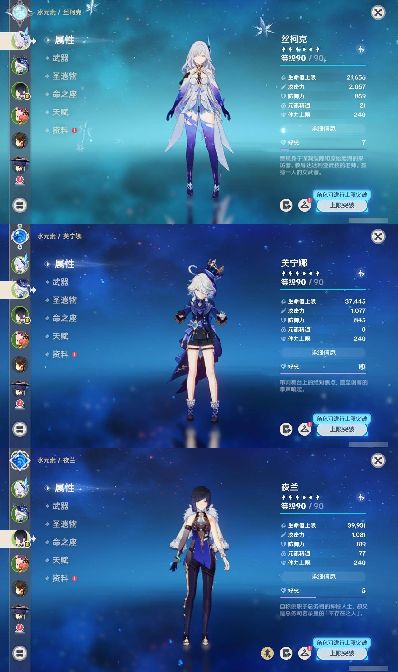 [16493414]59级/34黄/女主/23个五星角色/4个五星武器