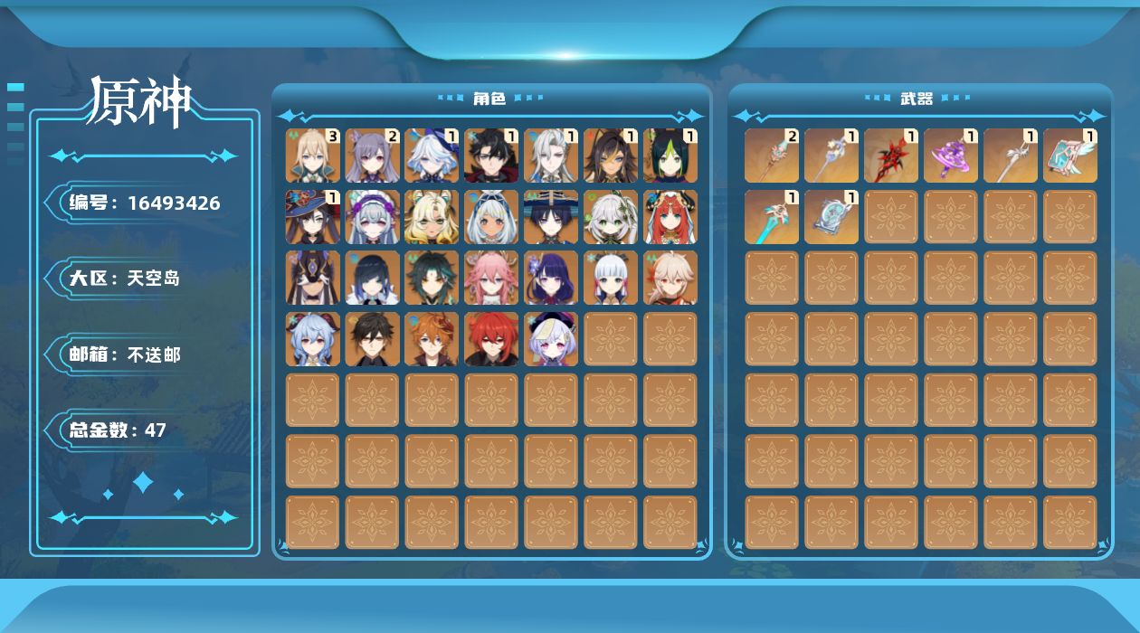 [16493426]60级/47黄/男主/26个五星角色/9个五星武器
