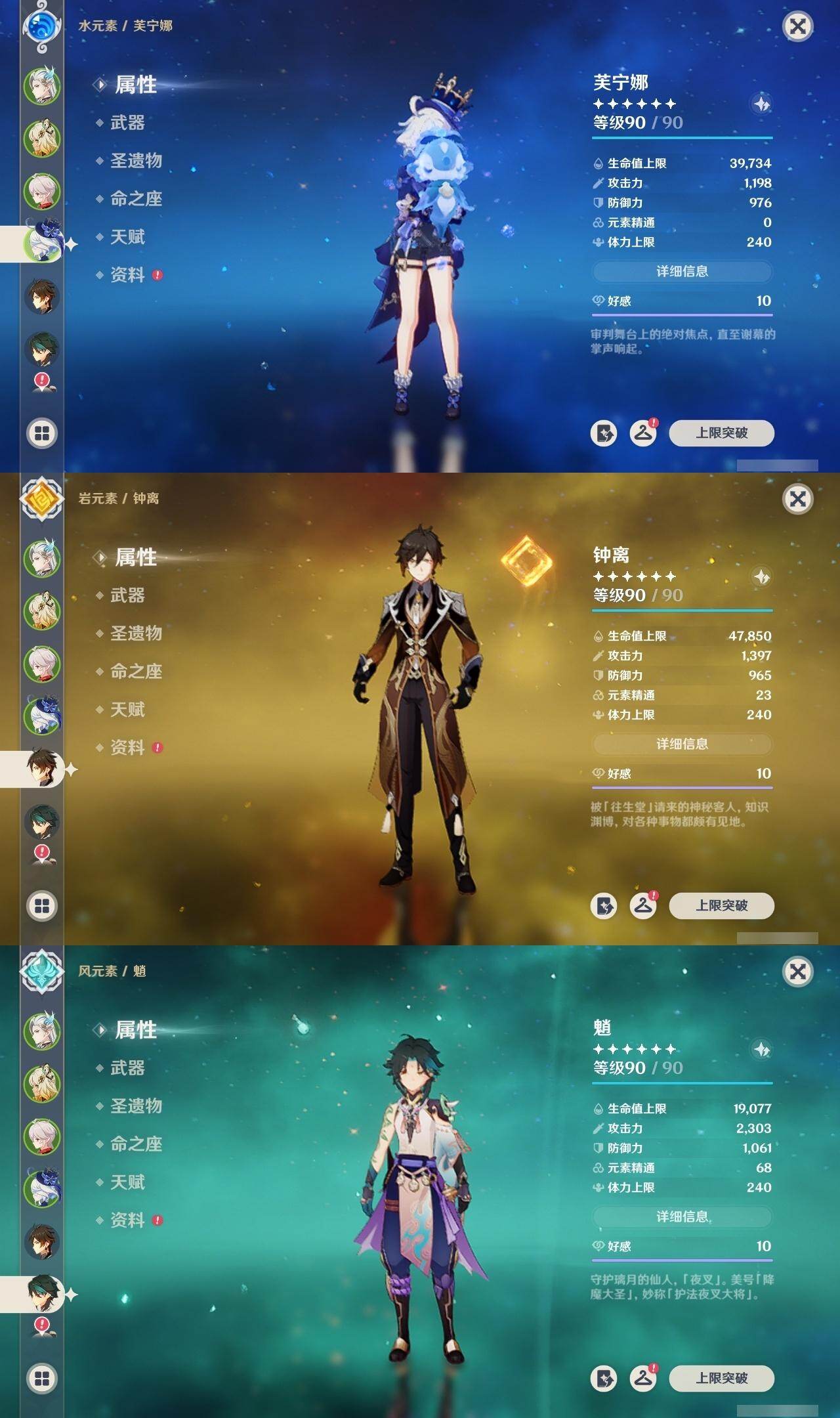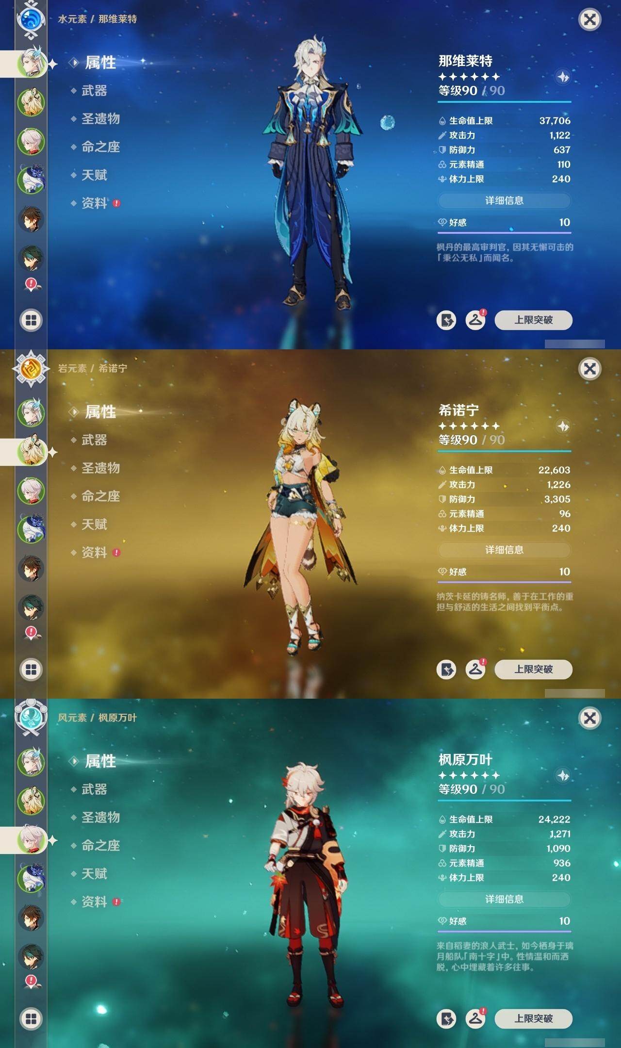 枫原万叶,钟离,魈,琴,甘雨,神里凌华,八重神子,雷电将军,达达利亚,莫娜,七七,迪卢克,刻晴