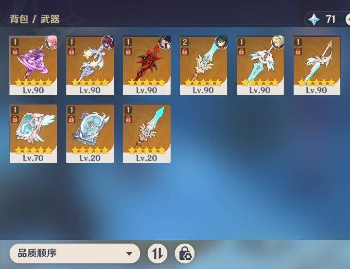 - [16855569]60级/70黄/女主/26个五星角色/20个五星武器 1命芙宁娜,1命莱欧斯利,0命那维莱特,0命林尼,0命艾尔海森,0命流浪者,0命纳西妲,0命赛诺,3命提纳里,0命八重神子,0命申鹤,0命荒泷一斗,0命优菈,0命雷电将军,1命枫原万叶,3命神里绫华,0命钟离,0命胡桃,0命宵宫,0命珊瑚宫心海,3命刻晴,3命七七,2命琴,满命莫娜,0命基尼奇,0命爱可菲,精1赦罪,精1有乐御簾切,精1静水流涌之辉,精1碧落之珑,精1苇海信标,精1赤沙之杖,精1若水,精1薙草之稻光,精1飞雷之弦振,精1雾切之回光,精1苍古自由之誓,精1护摩之杖,精1磐岩结绿,精2四风原典,精1天空之翼,精1阿莫斯之弓,精1风鹰剑,精1狼的末路