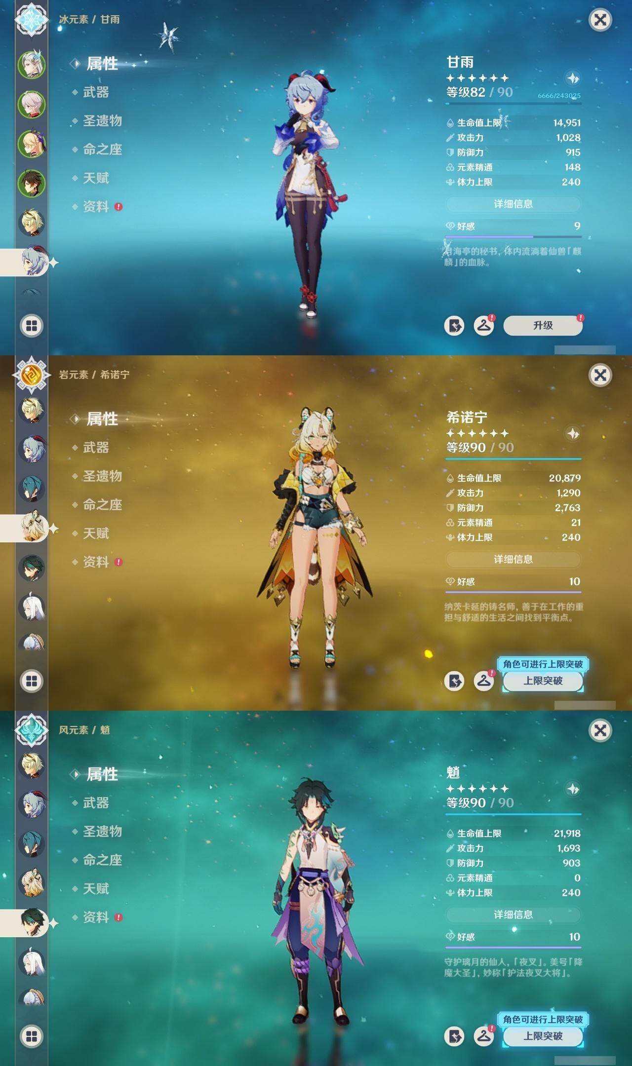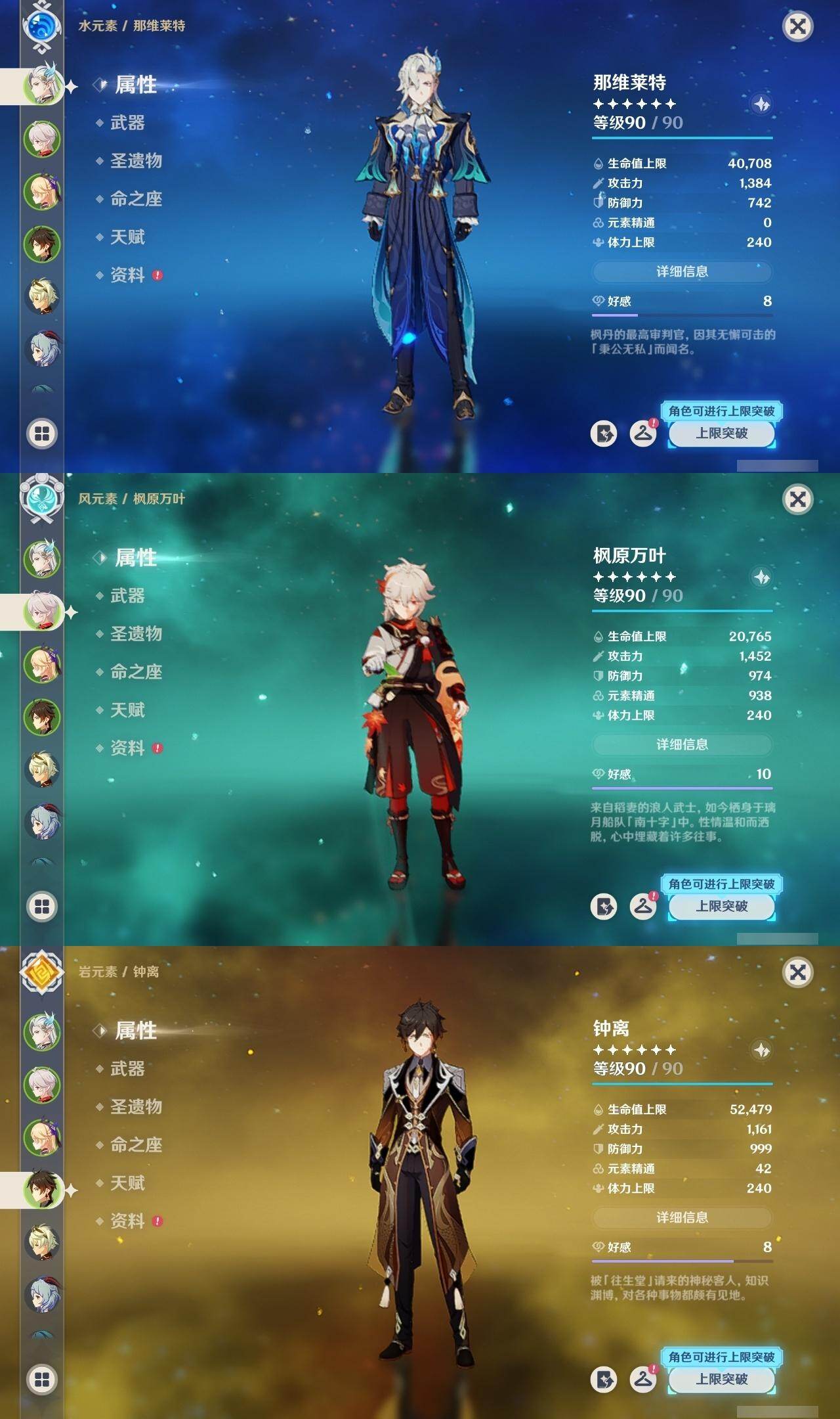 枫原万叶,钟离,甘雨,魈,申鹤,神里凌华,雷电将军,莫娜,宵宫,迪卢克,七七,琴