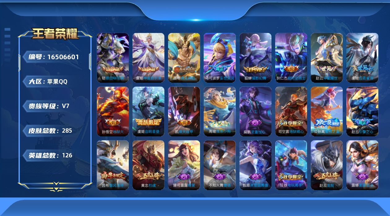 [16506601]苹果Q-V7-126英雄-285皮肤-2典藏皮肤-9传说-76史诗
