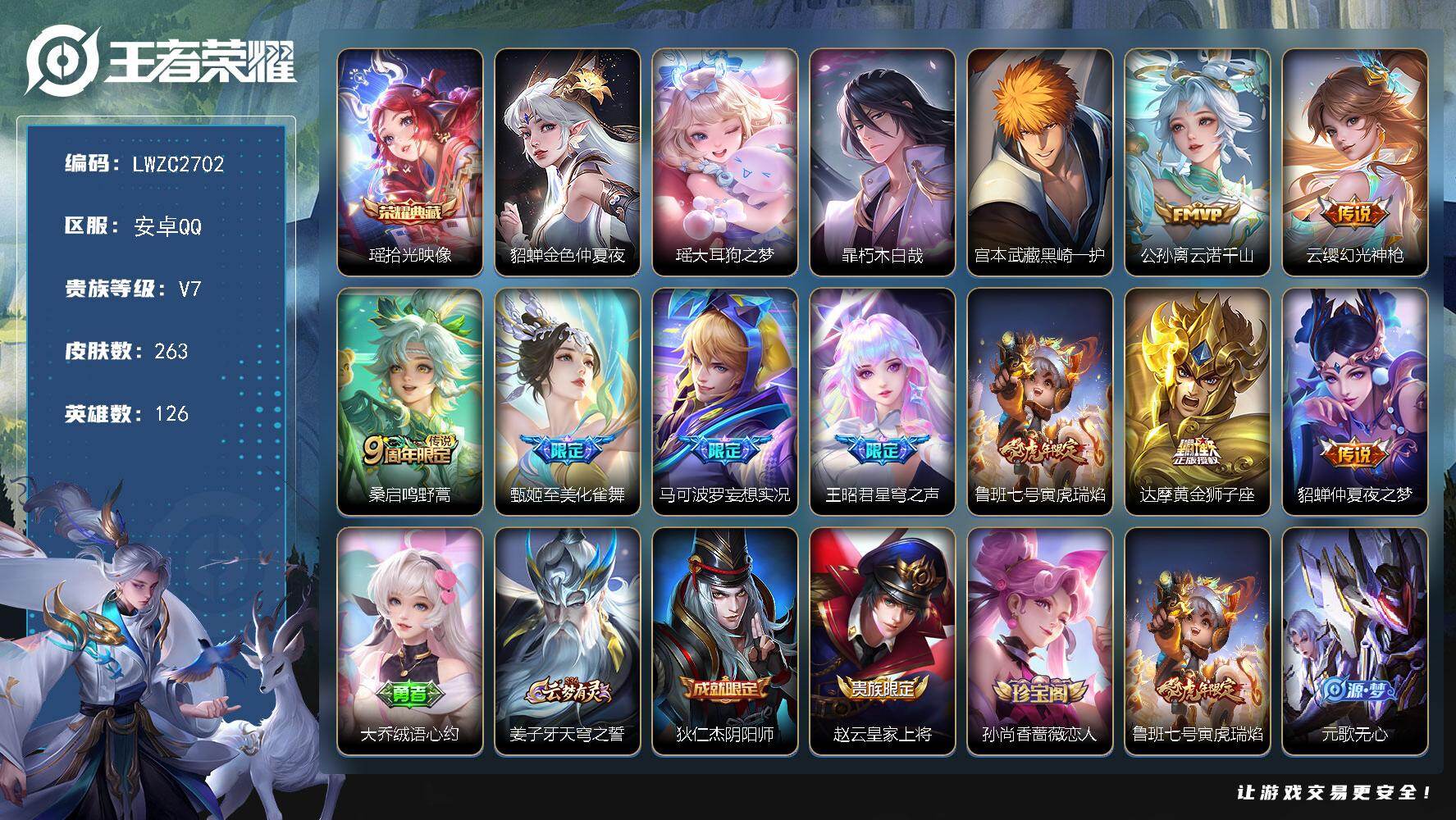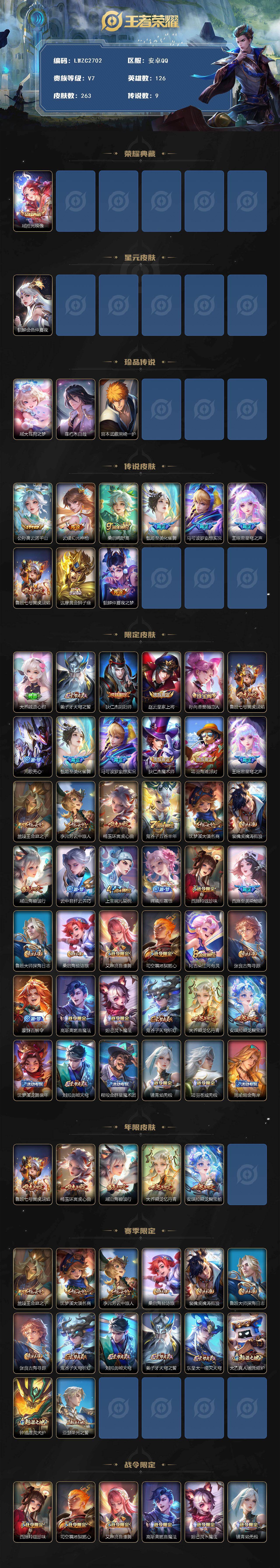 [16478930]【特价出售/店主推荐、女号】安卓Q-V7-永恒钻石III段位-126英雄-263皮肤-1典藏皮肤-3珍品传说-1星传说-9传说-58史诗