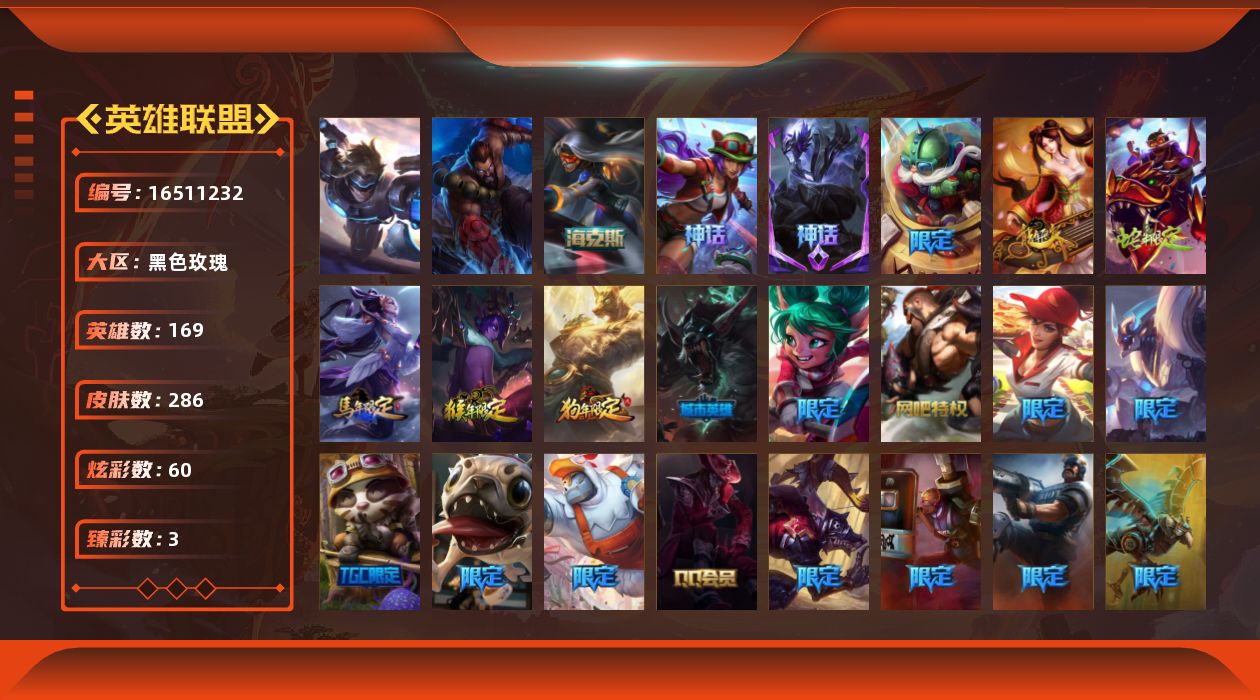 [16511232]【店主推荐捡漏号】未定级段位-169英雄-286皮肤-60炫彩-2终极-3神话-68限定-27传说-74史诗
