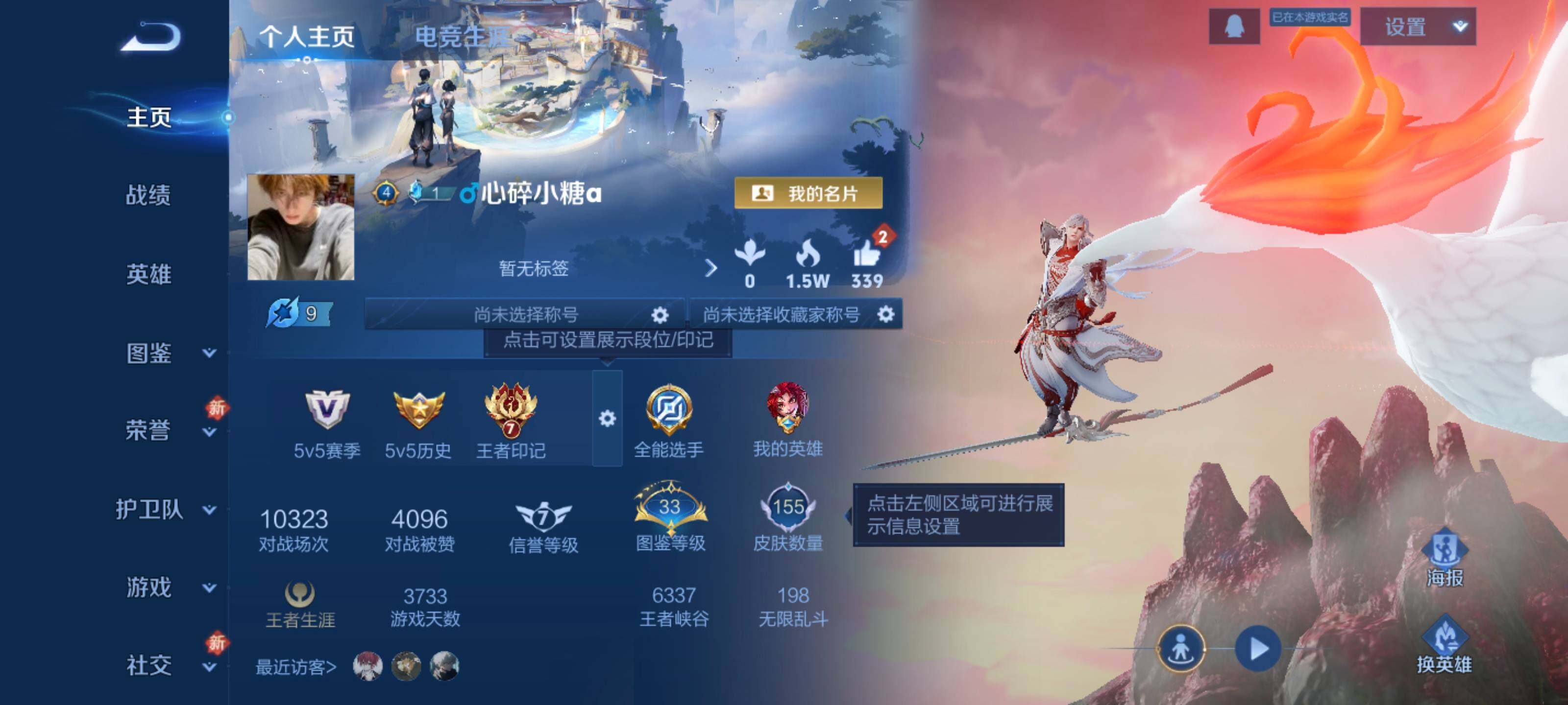 - PX_2085009-贵族等级: V6 英雄数: 124 皮肤数: 107 传说皮: 久胜战神,淬星耀世,山海·琳琅生,画中仙,浮生妄 限定皮: 李小龙,梁祝,寅虎·瑞焰,五谷丰年