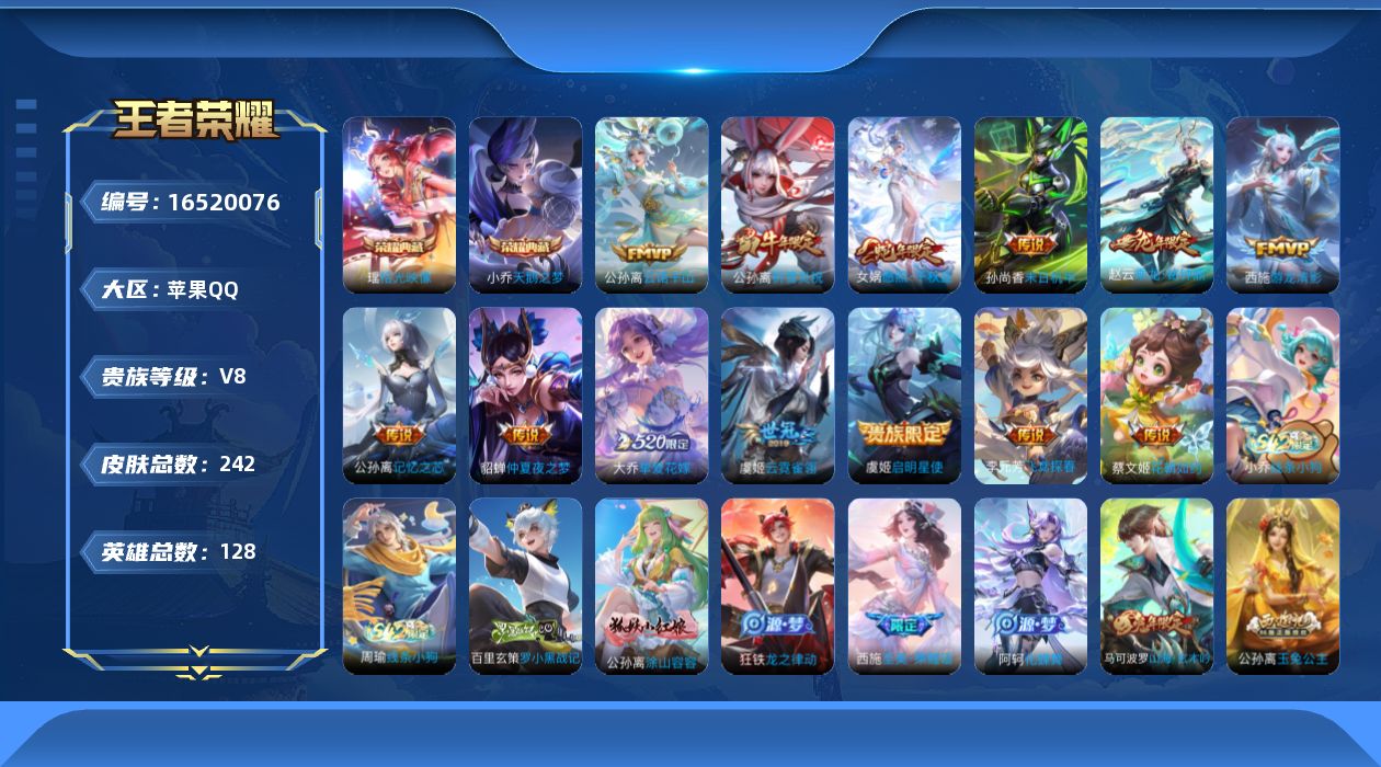 [16520076]苹果Q-V8-128英雄-242皮肤-2典藏皮肤-13传说-73史诗