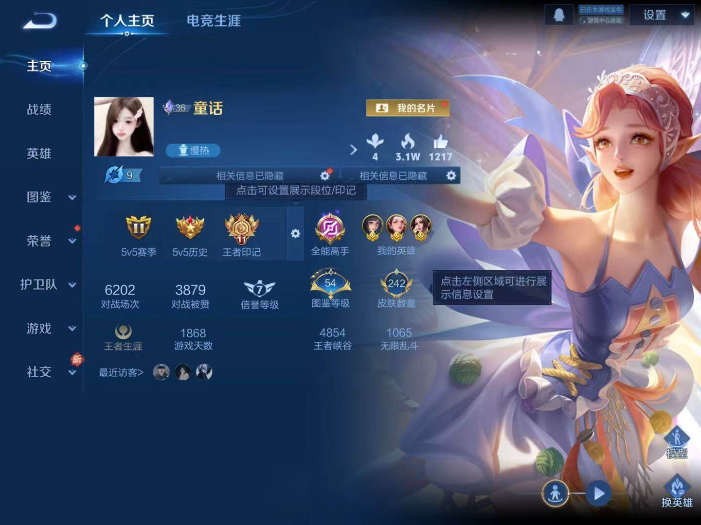 - PX_2084862-贵族等级: V5 英雄数: 121 皮肤数: 119 星传说: 幽冥火 传说皮: 地狱火 限定皮: 李小龙,梁祝,至尊宝