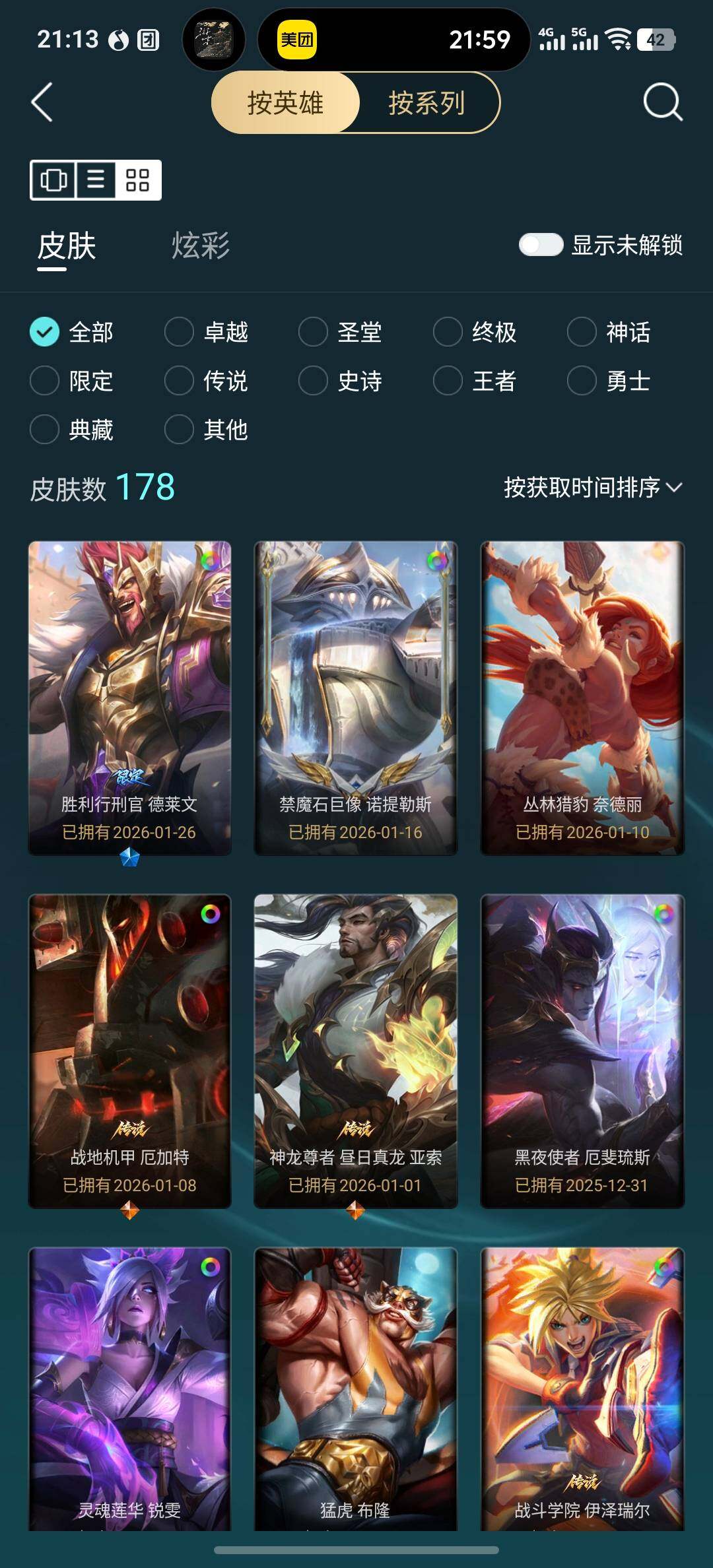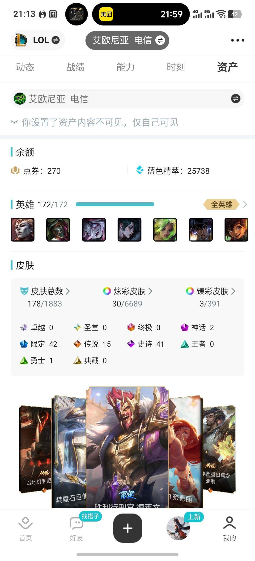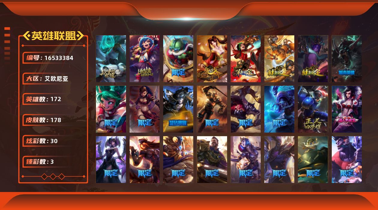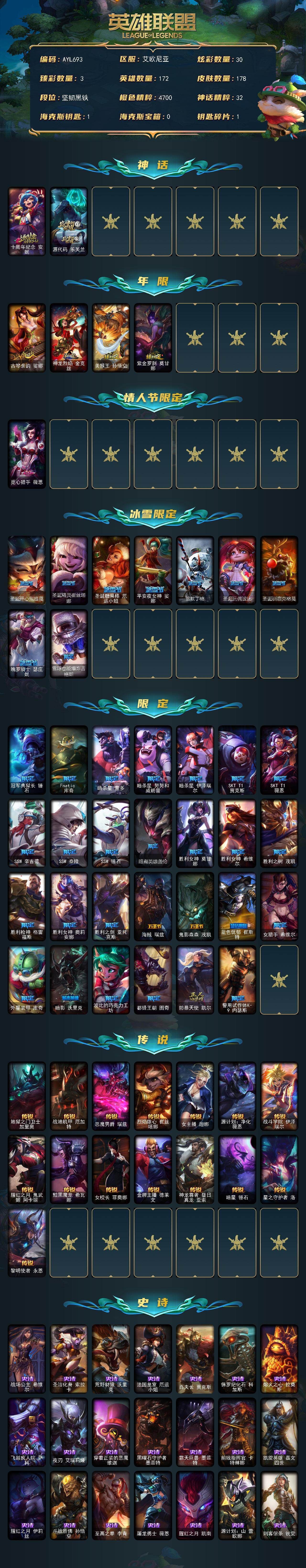 [16533384]【店主推荐捡漏号】未定级段位-172英雄-178皮肤-30炫彩-0终极-2神话-42限定-15传说-41史诗
