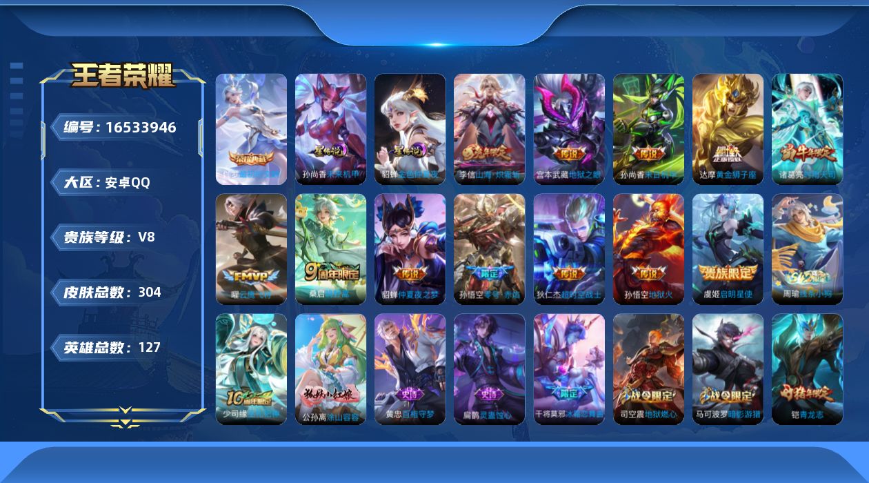 [16533946]安卓Q-V8-304皮肤-1典藏皮肤-13传说-85史诗