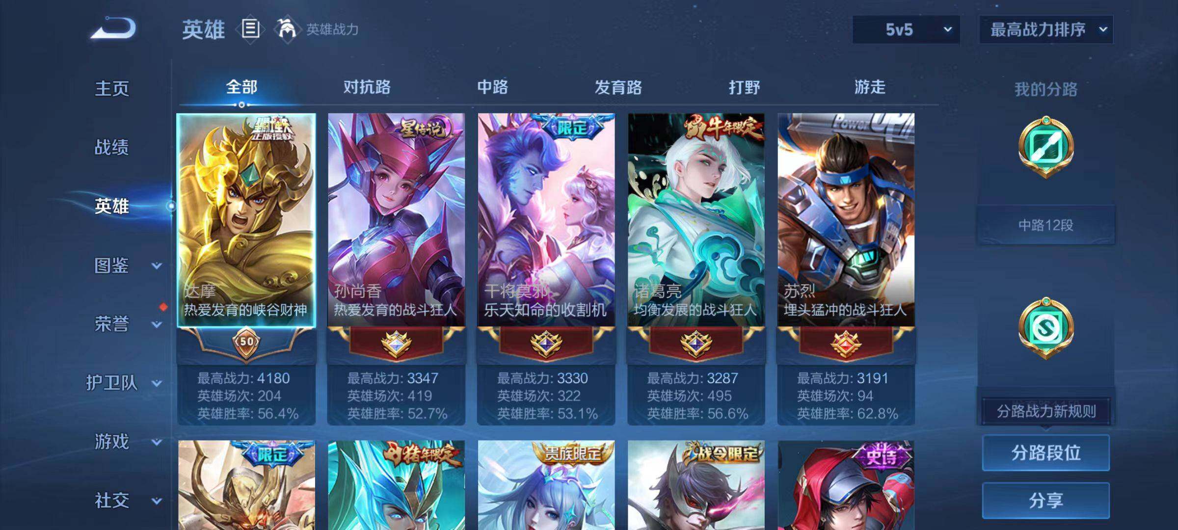 【赛季限定】:虞姬凯尔特女王,白起狰,太乙真人饕餮,芈月重明,典韦穷奇,狂铁御狮,米莱狄御霄,牛魔御旌,盾山御銮,夏侯惇朔风刀,弈星混沌棋,明世隐疑决卦,老夫子醍醐杖,鬼谷子原初探秘者,狄仁杰万华元夜,程咬金演武夺筹,钟馗驱傩正仪,达摩沙漠行僧,兰陵王金庭之子,沈梦溪大漠名商,李元芳云中旅人,桑启海盐诗旅,裴擒虎擒涛扼浪,鲁班大师探海日志,张良古海寻踪,鬼谷子天穹祈灯,刘邦剑破天穹,东皇太一噬灭天穹,百