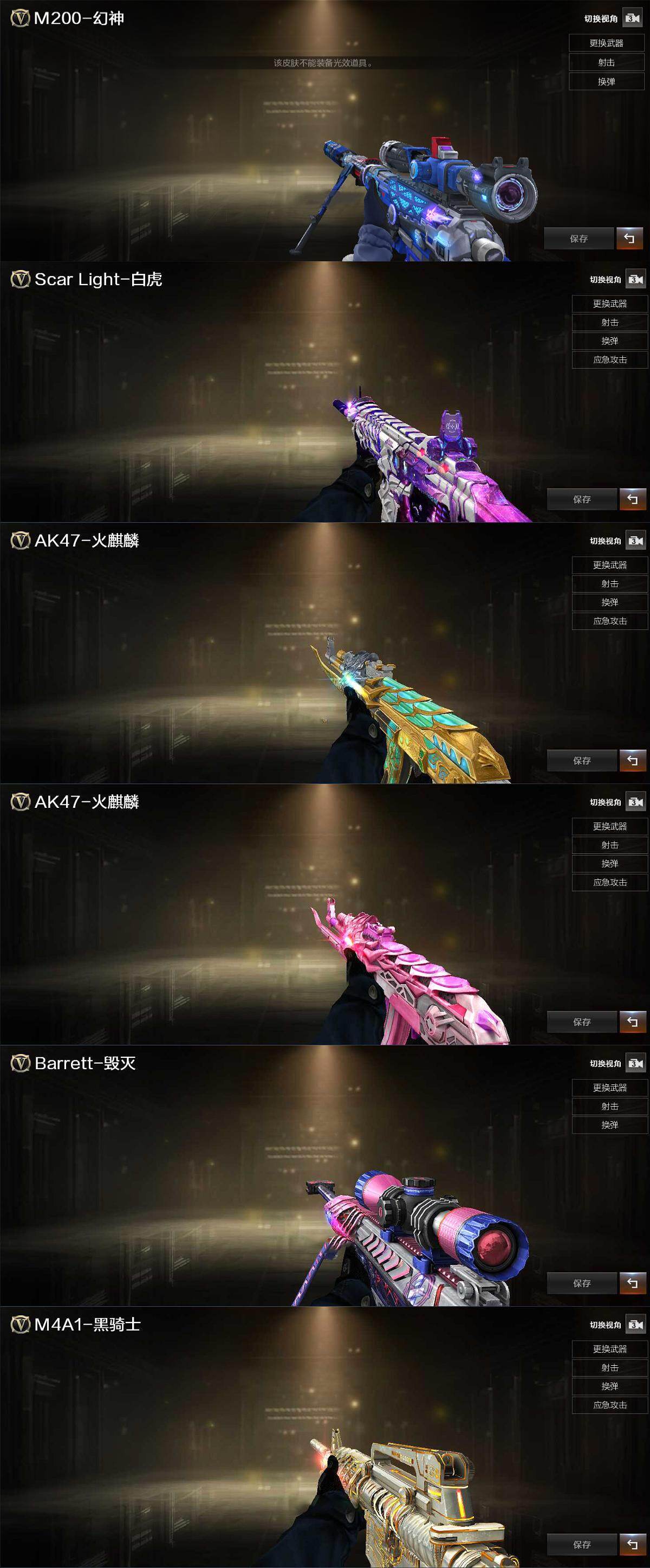 【热门武器】:M200-幻神,白虎之魄,Kar98K-星神,炼狱-迷你小钢,M4A1-黑骑士,COP 357-幻灵,沙鹰-修罗,金刚伞