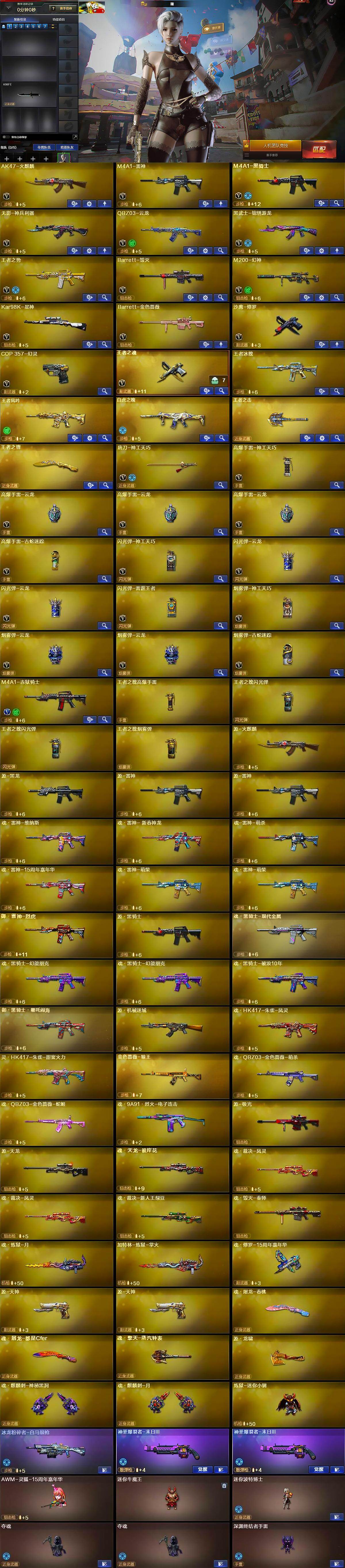 - [16391495]河南一区-62V-3王者武器数-2炫金武器数 【热门武器】:QBZ03-金色蔷薇,Scar Light-白虎,青龙之魄,M4A1-黑骑士,加特林-炼狱*2,沙鹰-修罗,炽芒蝶刃 【王者炫金武器】:青龙之魄,王者星霆,炫金骑士,炫金超新星 【皮肤】:雷神-维纳斯皮肤,雷神-源计划2.0专属 皮肤,黑龙-暗月,无影-能量核心,屠龙-星火燎原 【角色】:零,炫,晴雅,华,奇洋探员,乔伊教练,电竞少女,嘉年华灵狐,零-水下丽影,兔囡囡,影武者-X 【人偶武器】:AWM-灵狐-15周年嘉年华,M37-葵,生化手雷-机甲核心*2 【英雄级武器】:M4A1-千变,AK47-火麒麟,M4A1-黑龙,M4A1-雷神,M4A1-黑骑士,AK47-无影,AN94-超新星,M4A1-雷霆,Scar Light-白虎,QBZ03-云龙,黑武士-锦绣游龙,超新星-热带奇洋,QBZ03-金色蔷薇,AK-47-猩红传说,Barrett-毁灭,Barrett-极光,加特林-炼狱*2,沙鹰-修罗,沙鹰-天神,COP-雷霆*2,COP 357-云龙*2,屠龙,龙啸,擎天,麒麟刺,炽芒蝶刃,龙啸-热带奇洋,高爆手雷-雷霆*7,高爆手雷-云龙,手雷-热带奇洋,闪光弹-雷霆*7,闪光弹-云龙,闪光弹-雷霆王者-觉醒版,烟雾弹-雷霆*7,烟雾弹-云龙 【道具】:CFS限定背包,奇洋探员-海龟背包,炫彩背包,热带奇洋炫彩背包,绿色巨人,灵魂忍者,迷雾幽灵,夺命之镰,防化服*2,金色流光-枪王排位*2,星辰流光-枪王排位,巅峰赛先锋-金色流光,枪王排位28赛季金色流光,热带奇洋表情,EP战队名片,EP战队喷图,EP战队击杀图标,C4-红龙,防弹头盔*4,防弹衣*5,C4工具钳*6,手雷包*5 【特殊枪械】:1白虎,1黑骑士,2炼狱