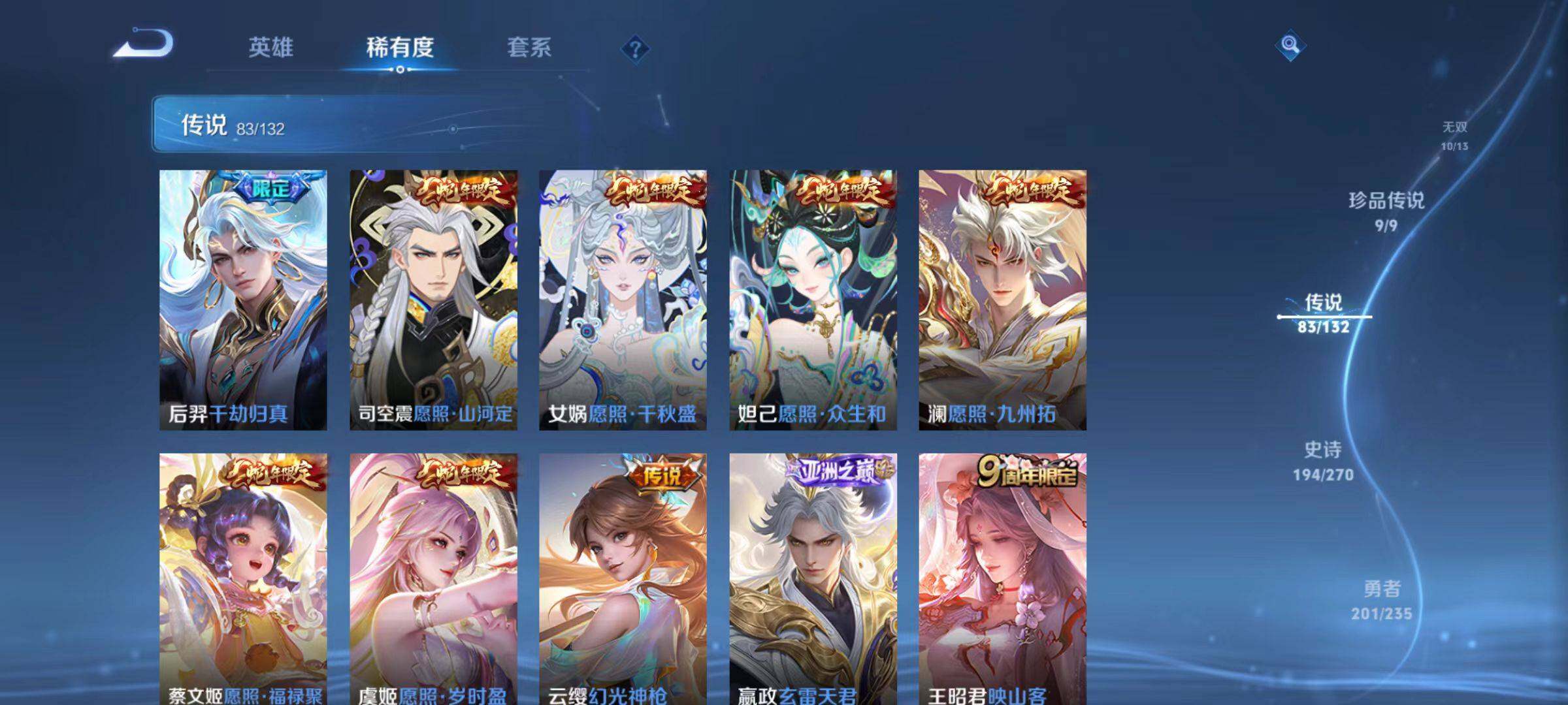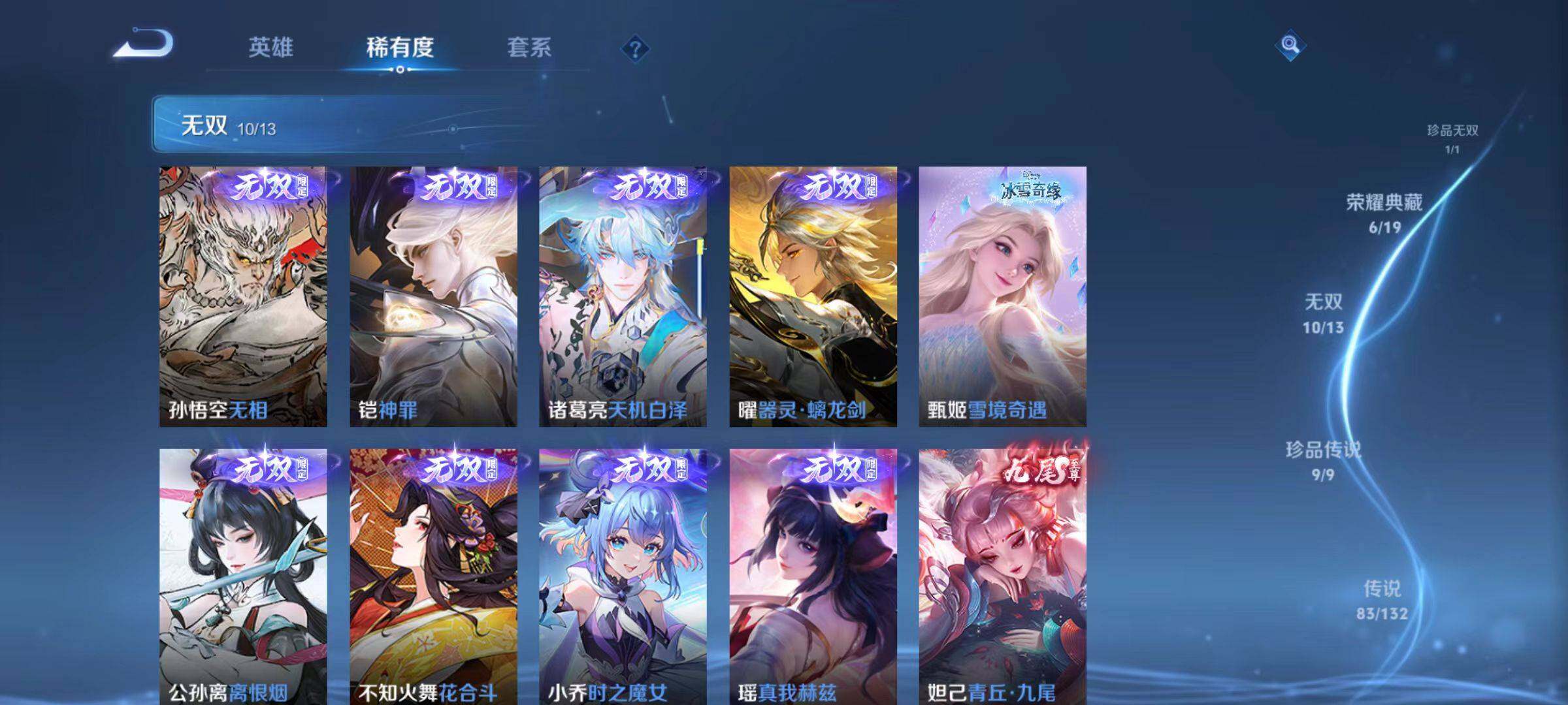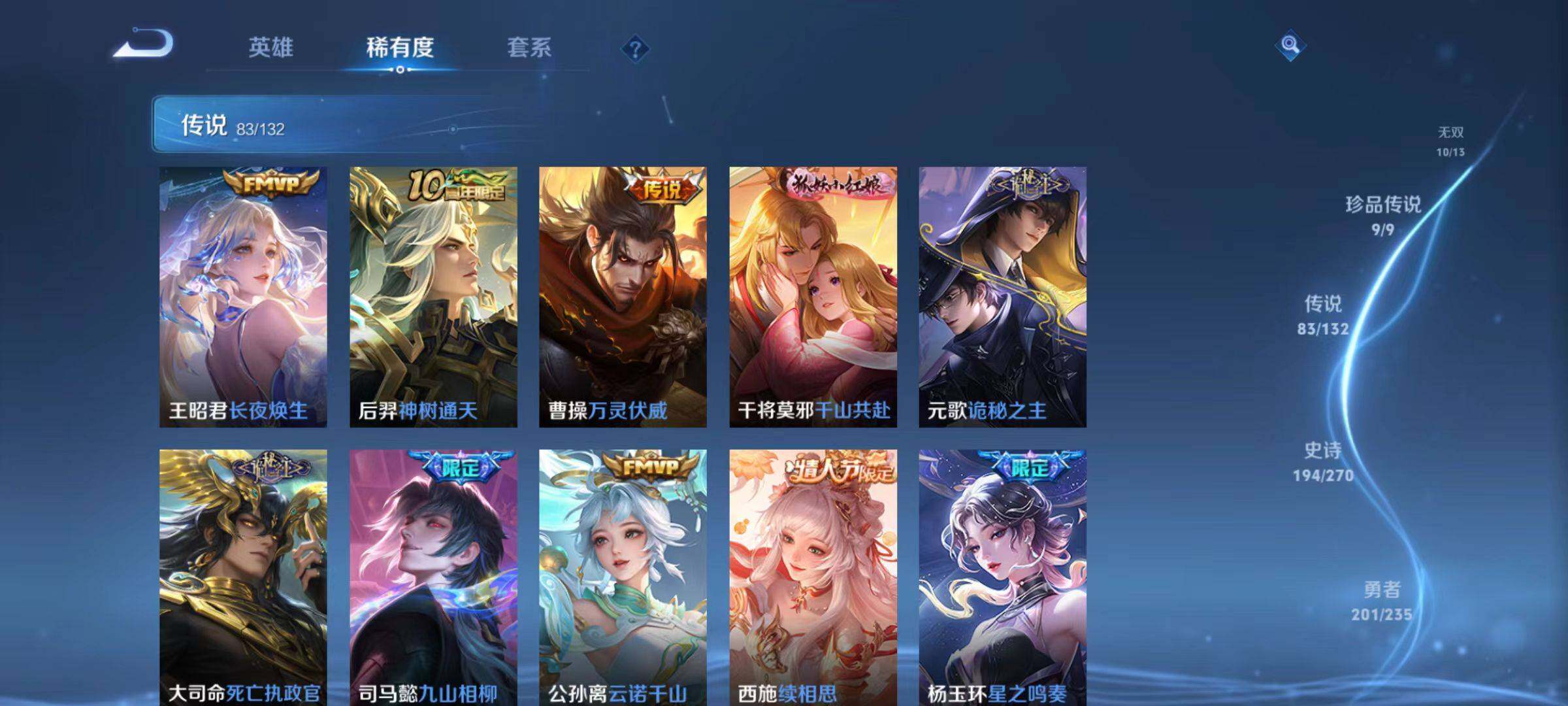 [16536080]安卓Q-V12-最强王者段位-129英雄-586皮肤-6典藏皮肤-1典藏英雄-1珍品无双-10无双-9珍品传说-83传说-193史诗