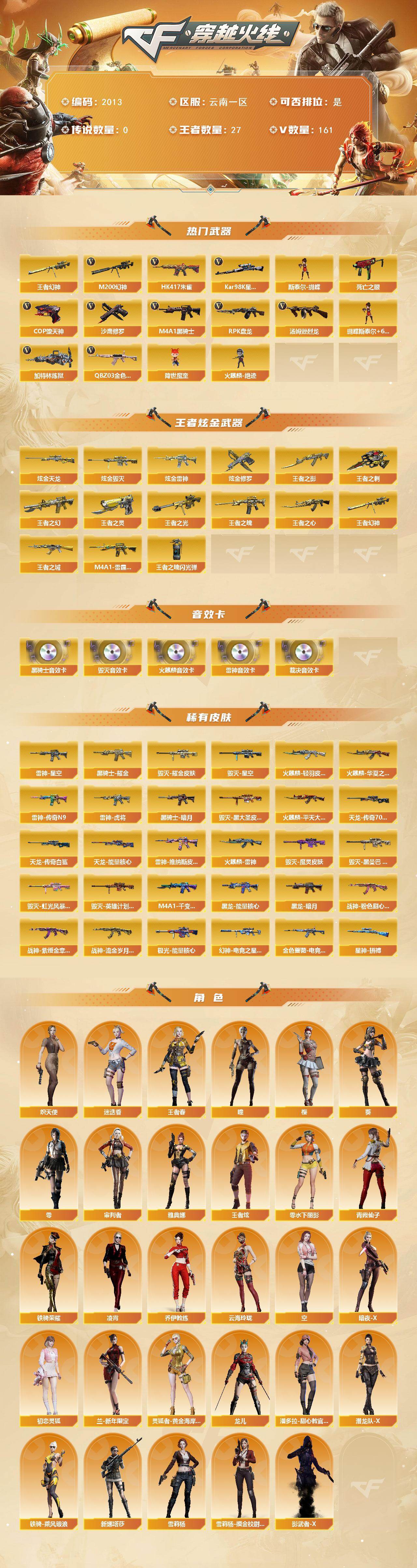 [16538816]云南一区-175V-27王者武器数-5炫金武器数