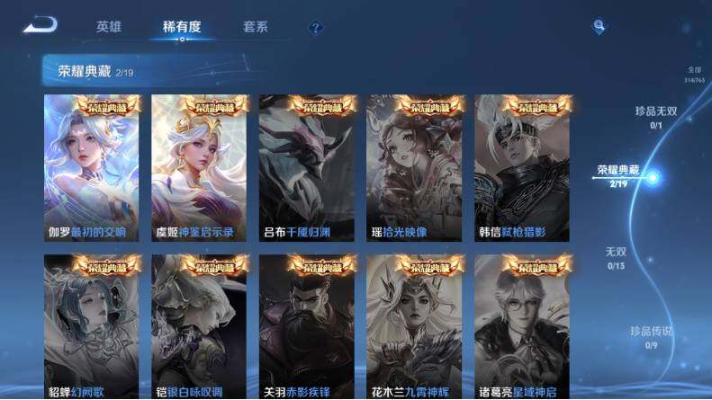 亚瑟狮心王,庄周蜃楼王,孙膑妖精王,扁鹊炼金王,虞姬凯尔特女王,太乙真人饕餮,曹操烛龙,芈月重明,狂铁御狮,米莱狄御霄,牛魔御旌,盾山御銮,夏侯惇朔风刀,明世隐疑决卦,老夫子醍醐杖,鬼谷子原初探秘者,程咬金演武夺筹,钟馗驱傩正仪,苏烈千军破阵,沈梦溪星空之诺,李元芳银河之约,刘邦夺宝奇兵,蒙犽狂想玩偶喵,弈星混沌棋,达摩沙漠行僧,兰陵王金庭之子,沈梦溪大漠名商,李元芳云中旅人,桑启海盐诗旅,裴擒虎擒涛扼浪,鲁班大师探海日志,张良古海寻踪,项羽苍威无极,镜青焰无极