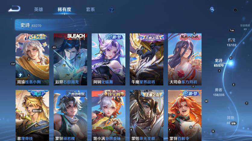 【赛季限定】:孙膑妖精王,扁鹊炼金王,虞姬凯尔特女王,白起狰,太乙真人饕餮,曹操烛龙,芈月重明,典韦穷奇,狂铁御狮,米莱狄御霄,牛魔御旌,盾山御銮,夏侯惇朔风刀,弈星混沌棋,明世隐疑
