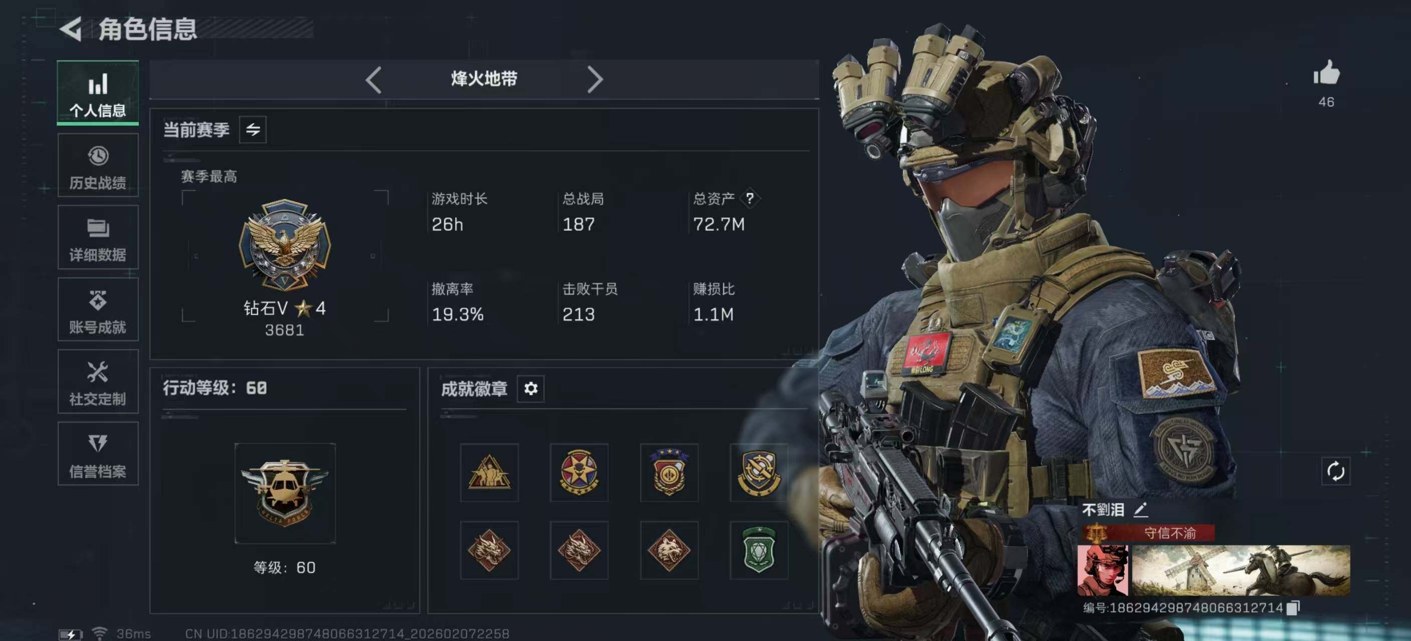 [16544283]【特价出售/店主推荐】72m总资产-870k哈伏币-60烽火等级-钻石-7战场等级-列兵