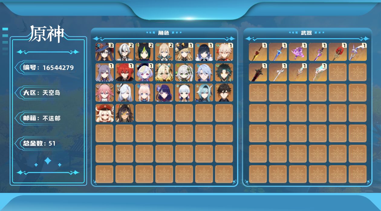 [16544279]60级/51黄/男主/25个五星角色/10个五星武器