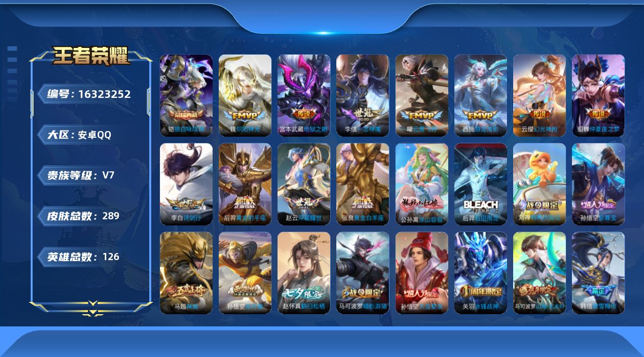[16323252]安卓Q-V7-289皮肤-1典藏皮肤-11传说-87史诗
