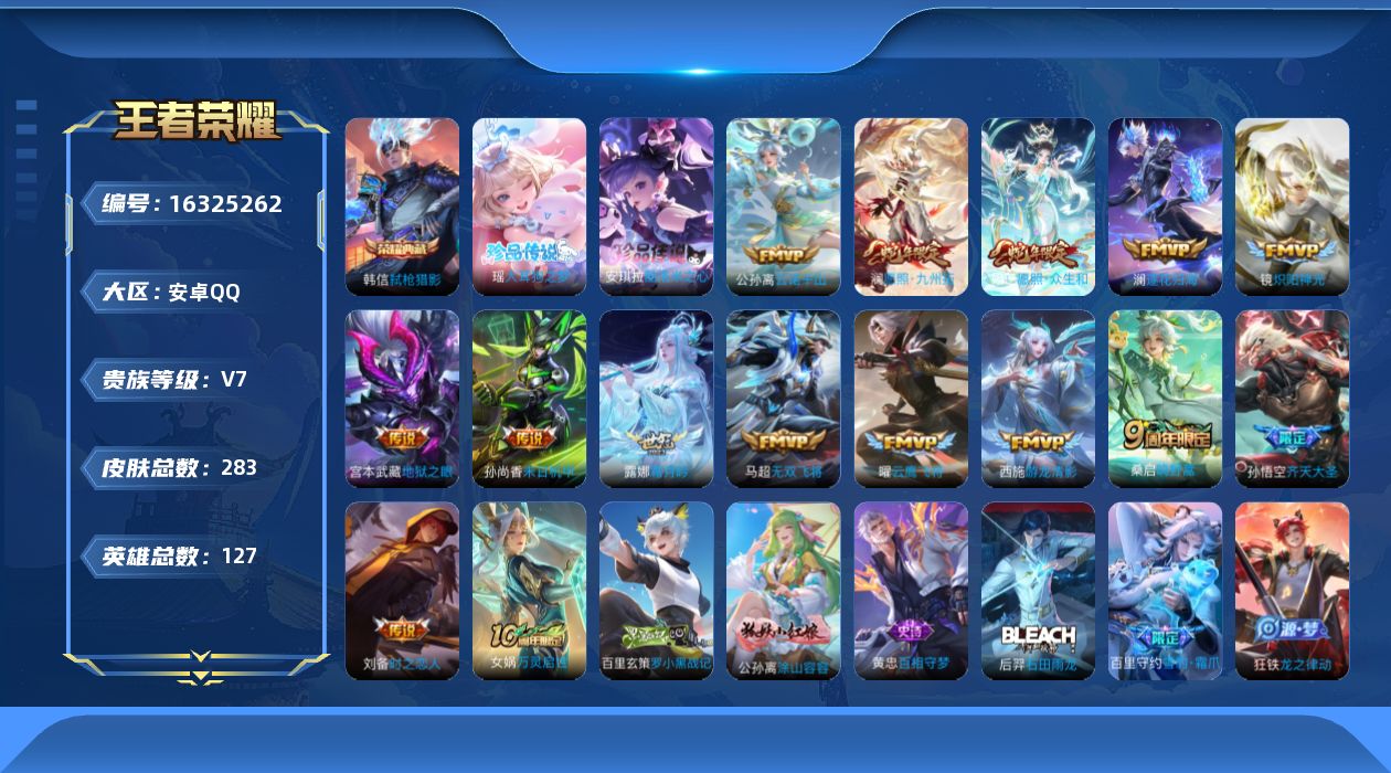 [16325262]安卓Q-283皮肤-1典藏皮肤-2珍品传说-15传说-77史诗