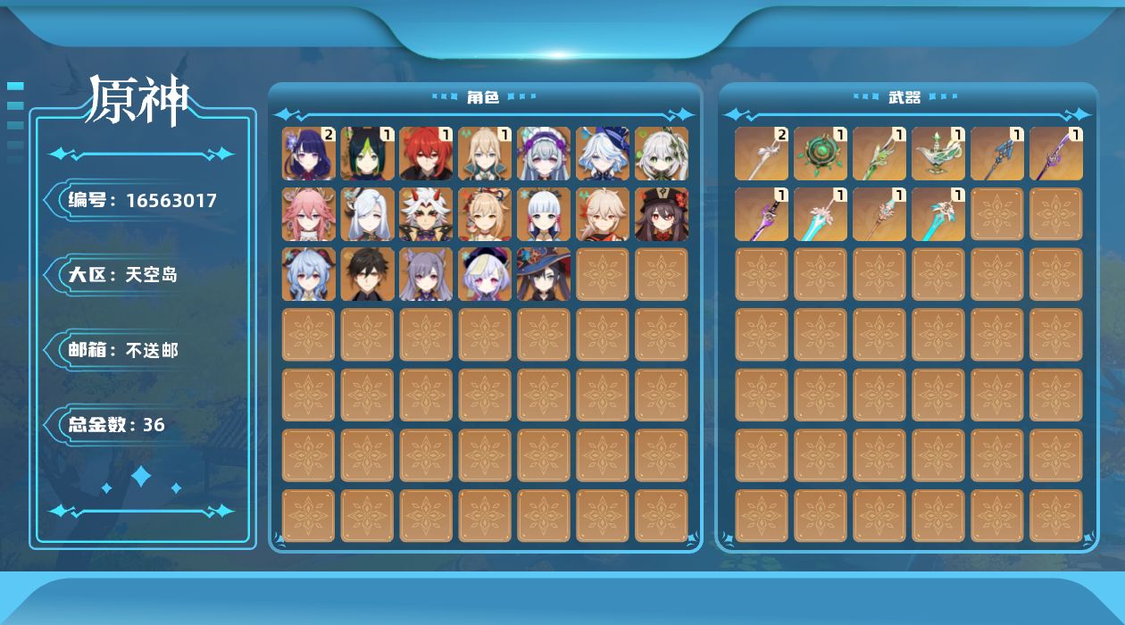 [16563017]59级/36黄/女主/20个五星角色/10个五星武器