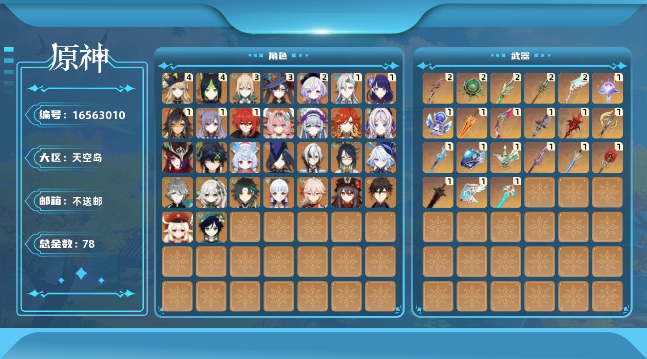 [16563010]58级/78黄/男主/31个五星角色/21个五星武器