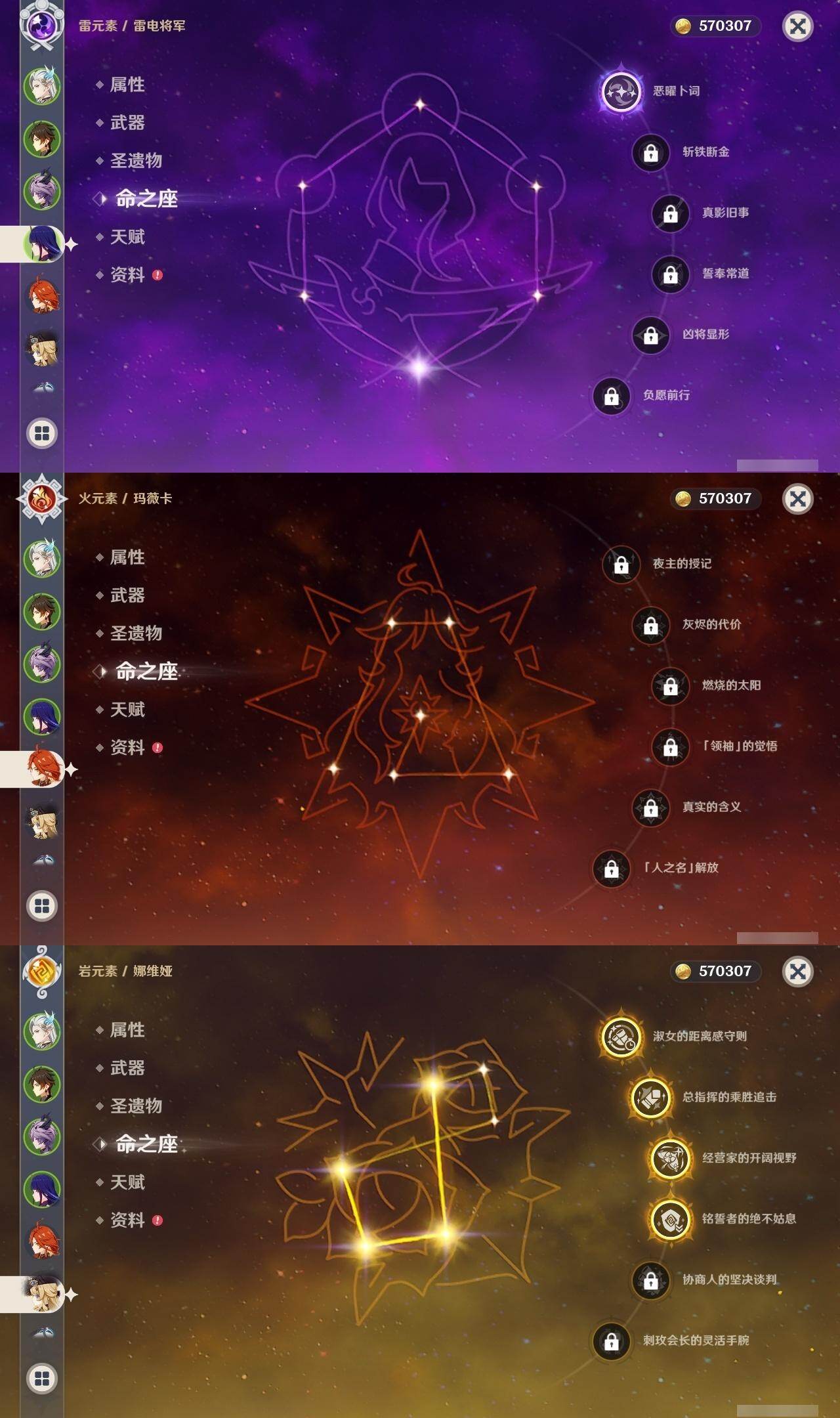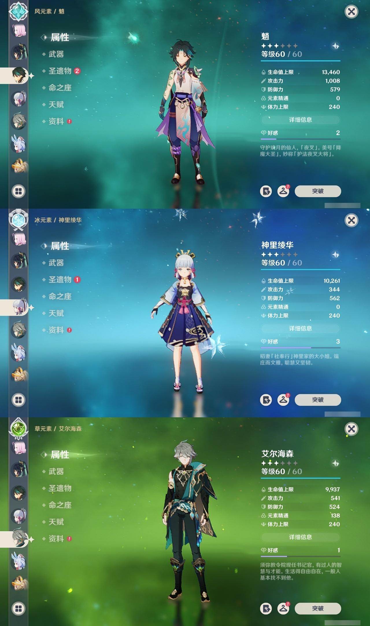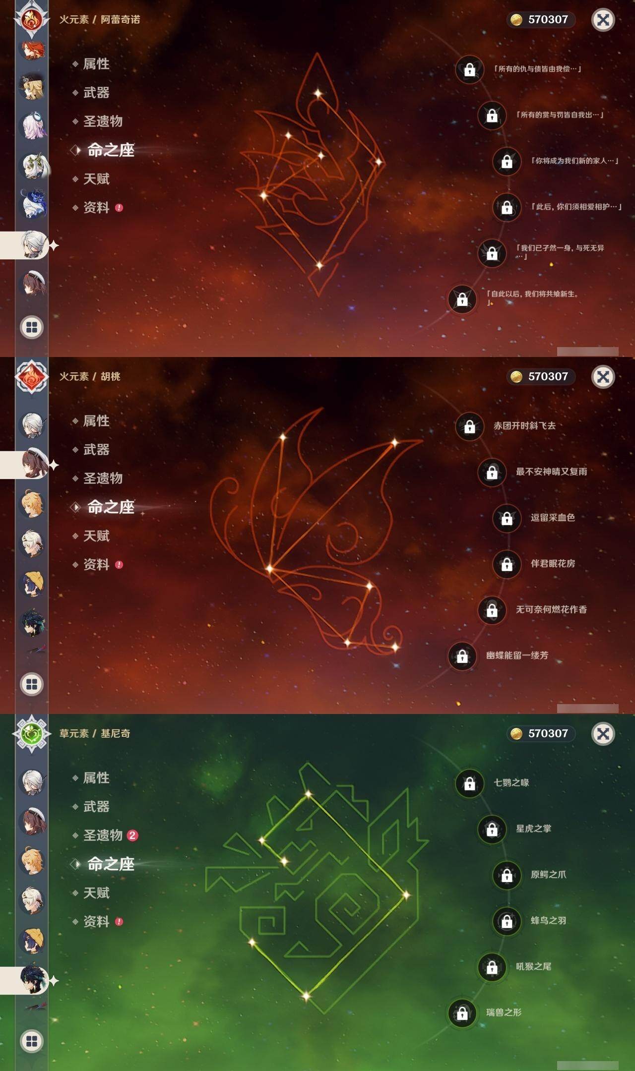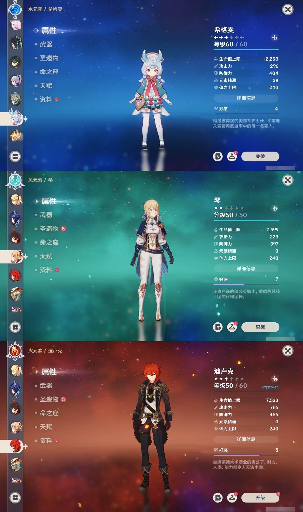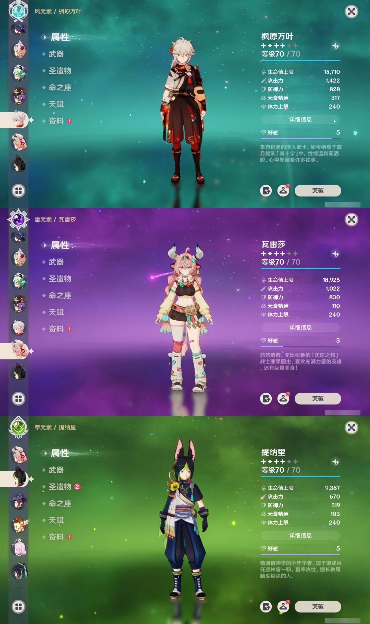0命希格雯,0命克洛琳德,0命阿蕾奇诺,0命闲云,4命娜维娅,0命芙宁娜,1命那维莱特,1命迪希雅,0命艾尔海森,0命纳西妲,4命提纳里,1命雷电将军,0命枫原万叶,0命神里绫华,0命钟离,0命胡桃,0命魈,0命温迪,0命可莉,1命刻晴,2命七七,3命琴,3命莫娜,1命迪卢克,0命基尼奇,0命恰斯卡,0命玛薇卡,0命茜特菈莉,0命梦见月瑞希,0命瓦雷莎,0命杜林,精1赦罪,精1赤月之形,精1裁断,精1静水流涌之辉,精1万世流涌大典,精2最初的大魔术,精2碧落之珑,精2裁叶萃光,精1千夜浮梦,精1薙草之稻光,精1苍古自由之誓,精1护摩之杖,精2和璞鸢,精2天空之翼,精1天空之刃,精1天空之卷,精1狼的末路,精1星鹫赤羽,精1祭星者之望,精1焚曜千阳,精1寝正月初晴