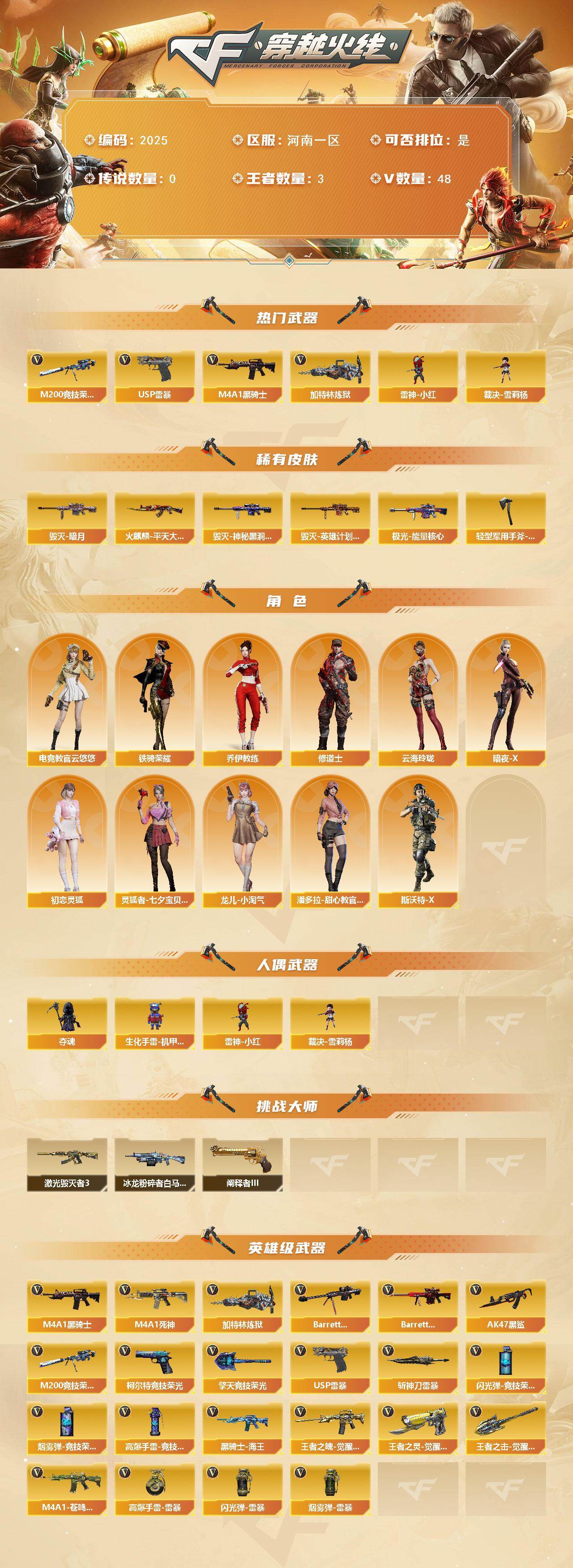[16571049]河南一区-53V-3王者武器数-0炫金武器数