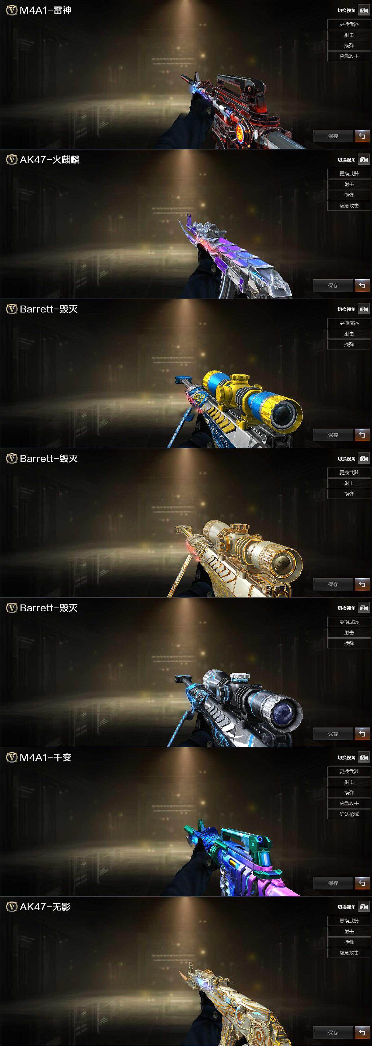 【音效卡】:AK47-火麒麟音效卡,M4A1-雷神音效卡,Barrett-毁灭音效卡,Barrett-碧霄极光音效卡