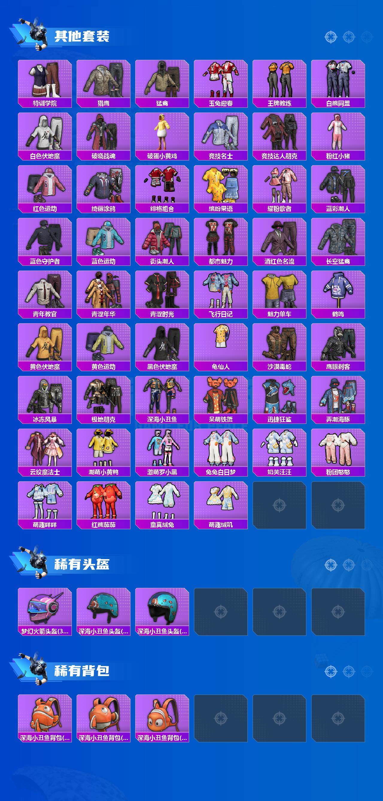 套装-缤纷油彩,套装-深海小丑鱼,套装-潮萌小黄鸭,套装-馨动时刻,套装-甜梦小狐,套装-甜蜜草莓,套装-冰川幽秘,套装-鹰眼刺客,套装-呆萌铁蟹,套装-迅捷狂鲨,兔兔白日梦套装,套装-奶芙汪汪