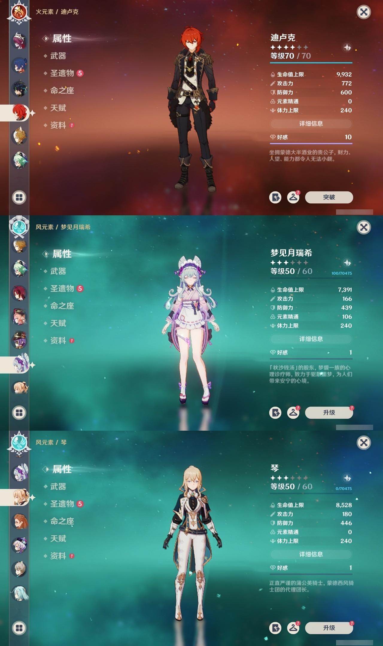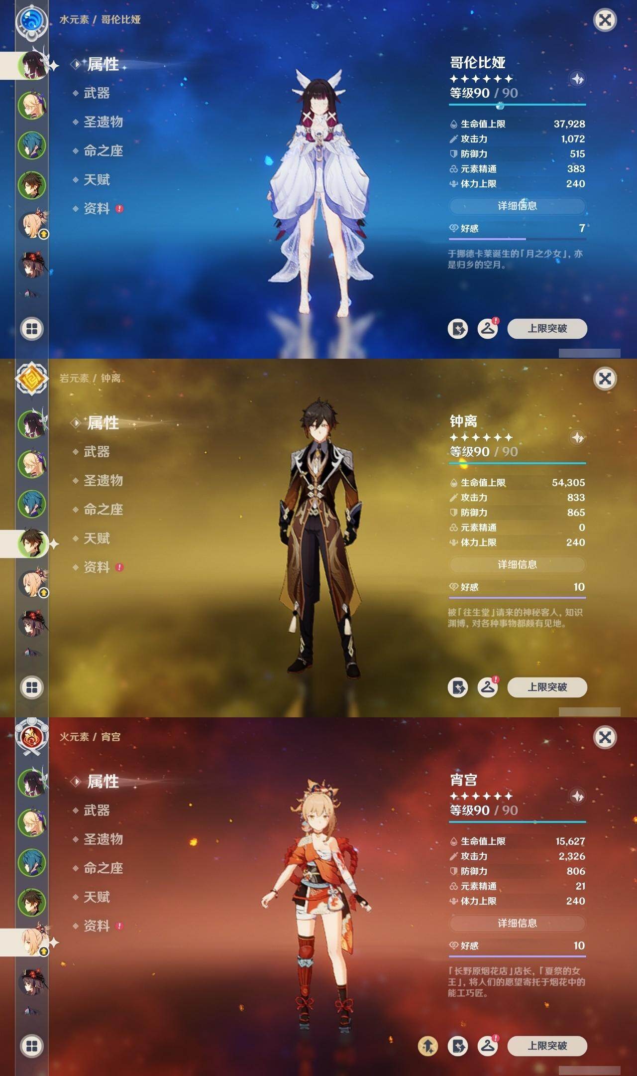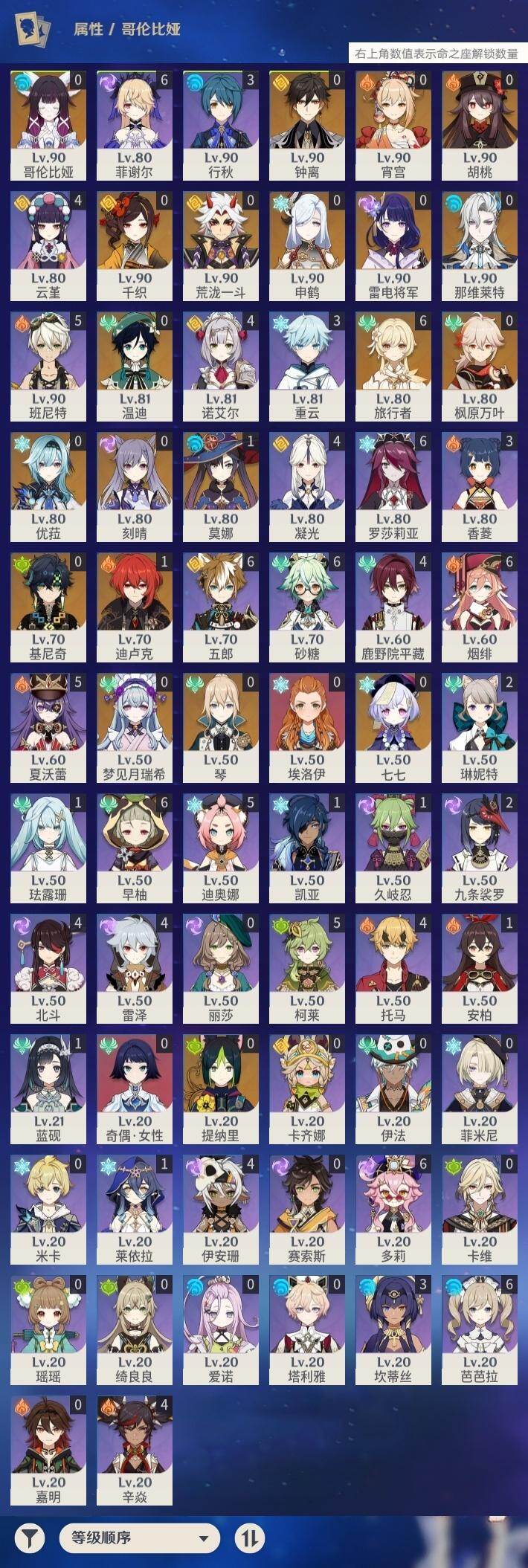 [16593384]59级/34黄/女主/20个五星角色/12个五星武器