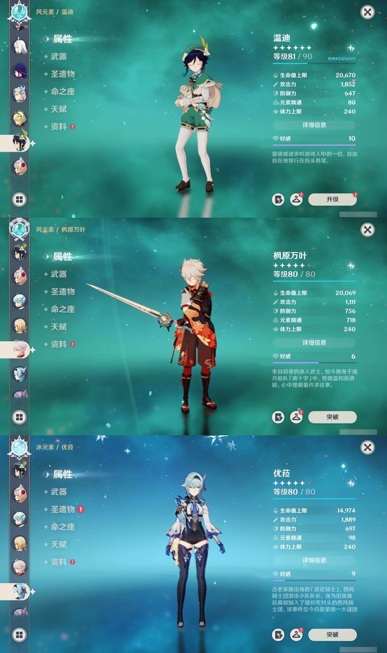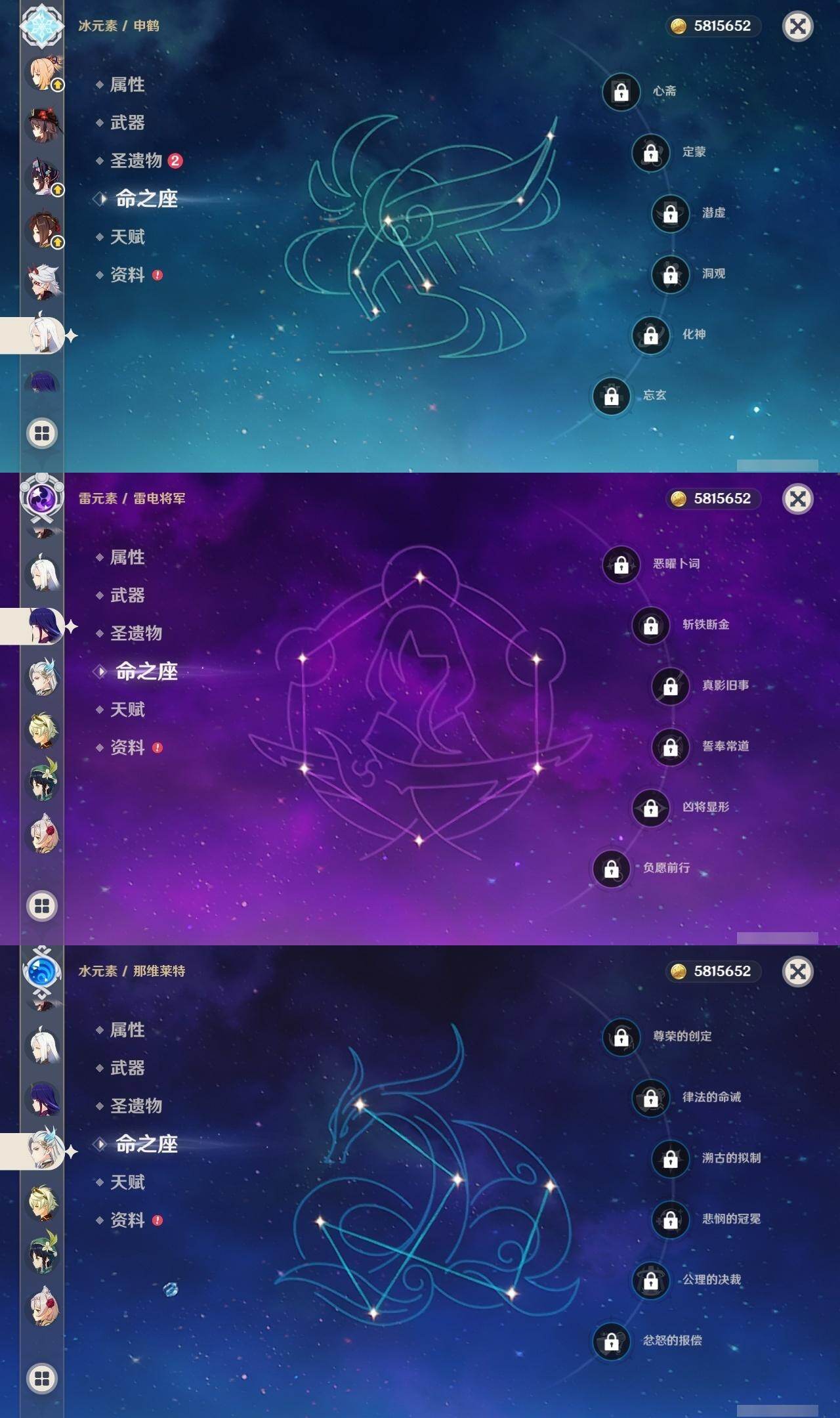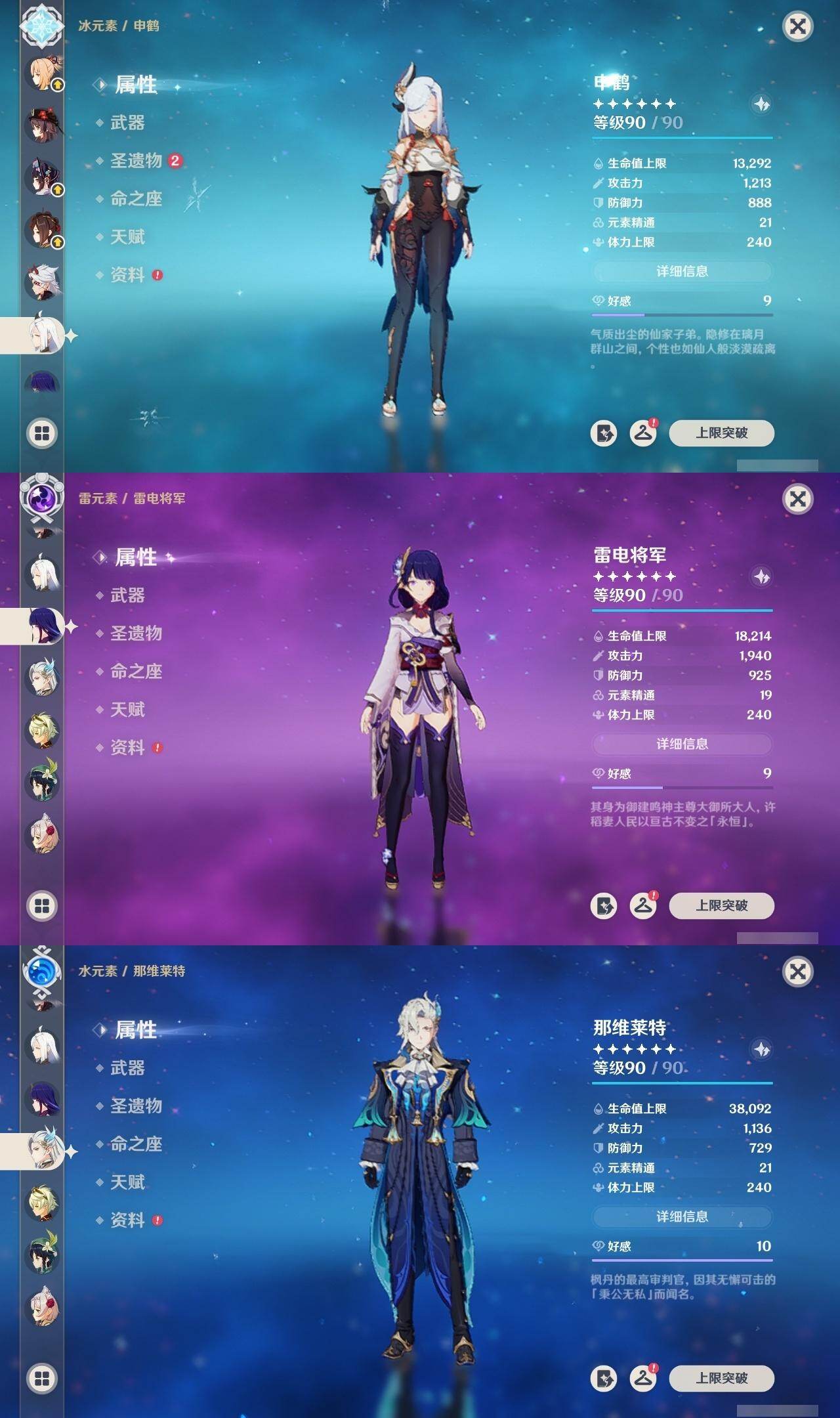 [16593384]59级/34黄/女主/20个五星角色/12个五星武器