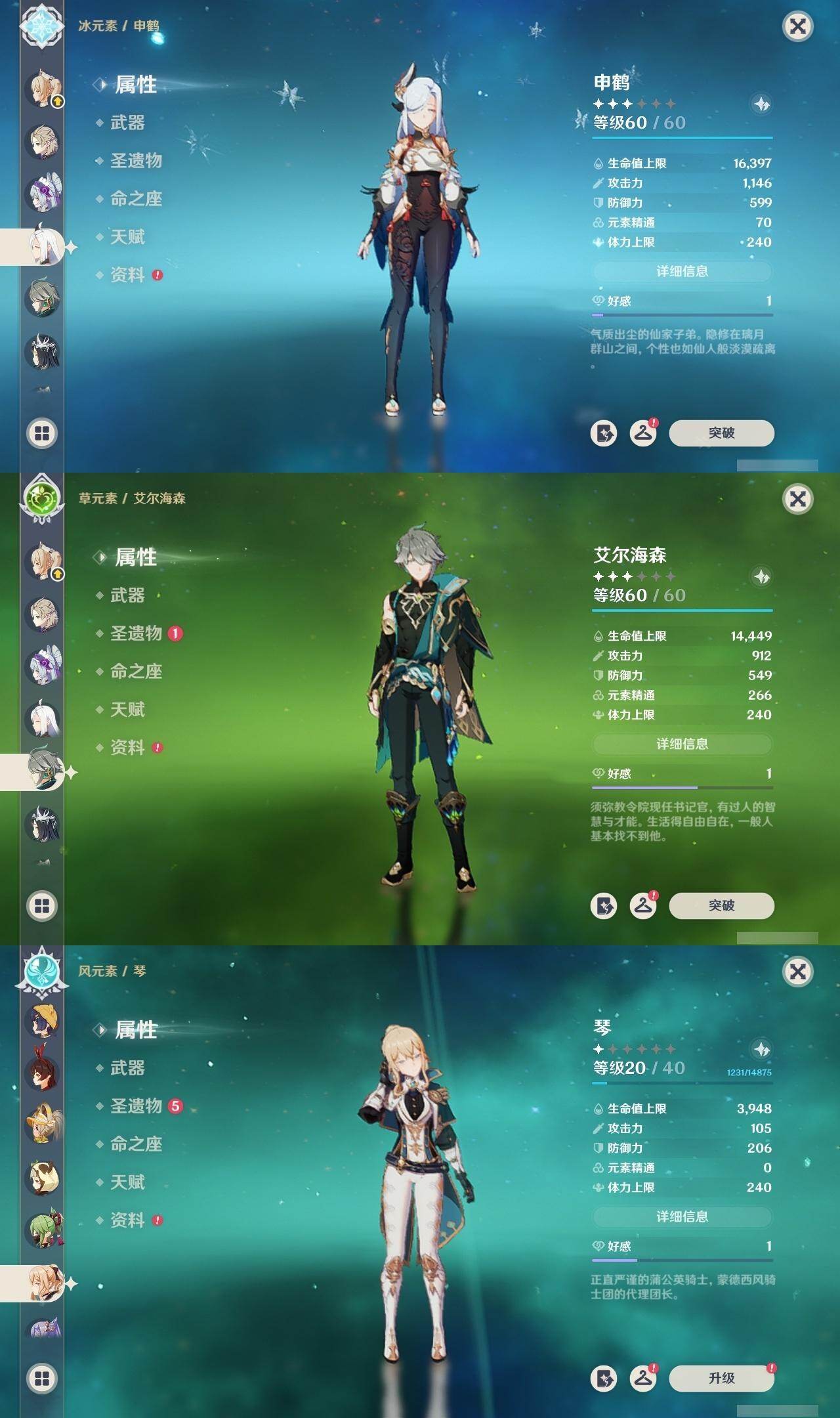 [16593392]58级/44黄/女主/24个五星角色/8个五星武器