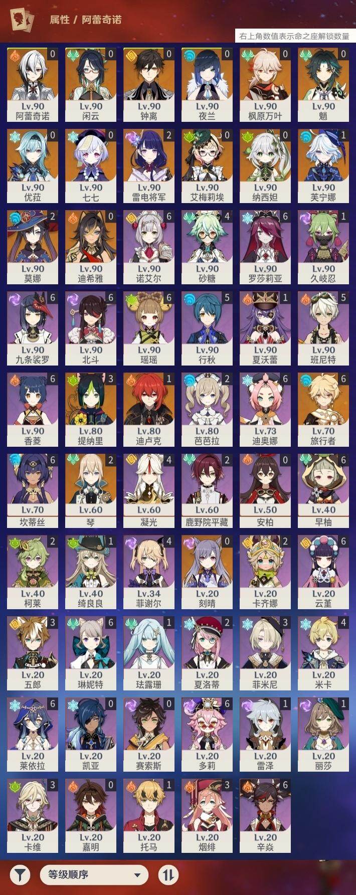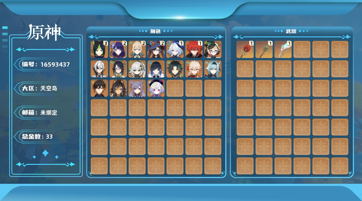 [16593437]60级/33黄/男主/18个五星角色/4个五星武器