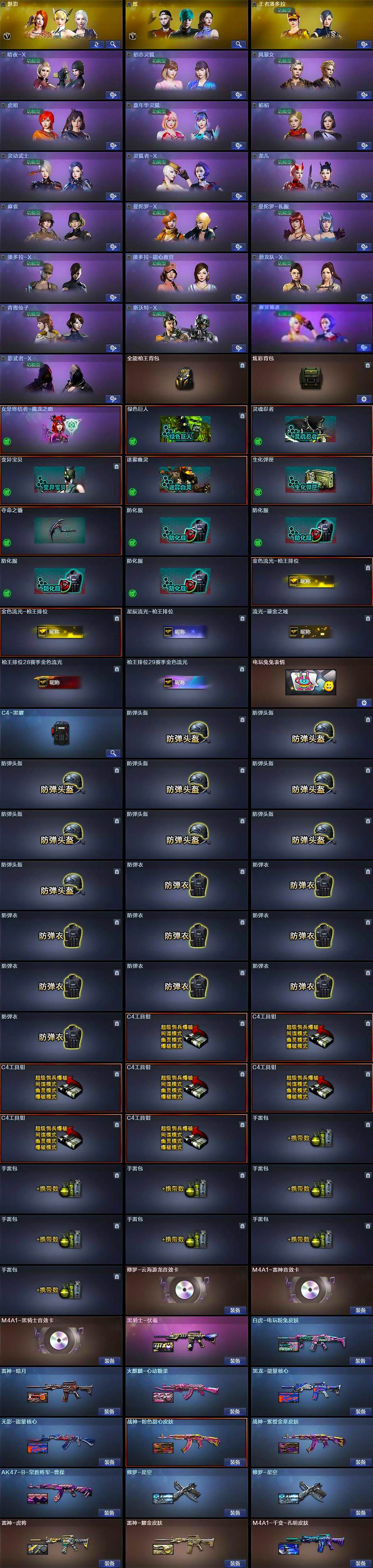 【道具】:全能枪王背包,炫彩背包,女皇终结者-魔龙之吻,绿色巨人,灵魂忍者,变异宝贝,迷雾幽灵,生化弹匣,夺命之镰,防化服*4,金色流光-枪王排位*2,