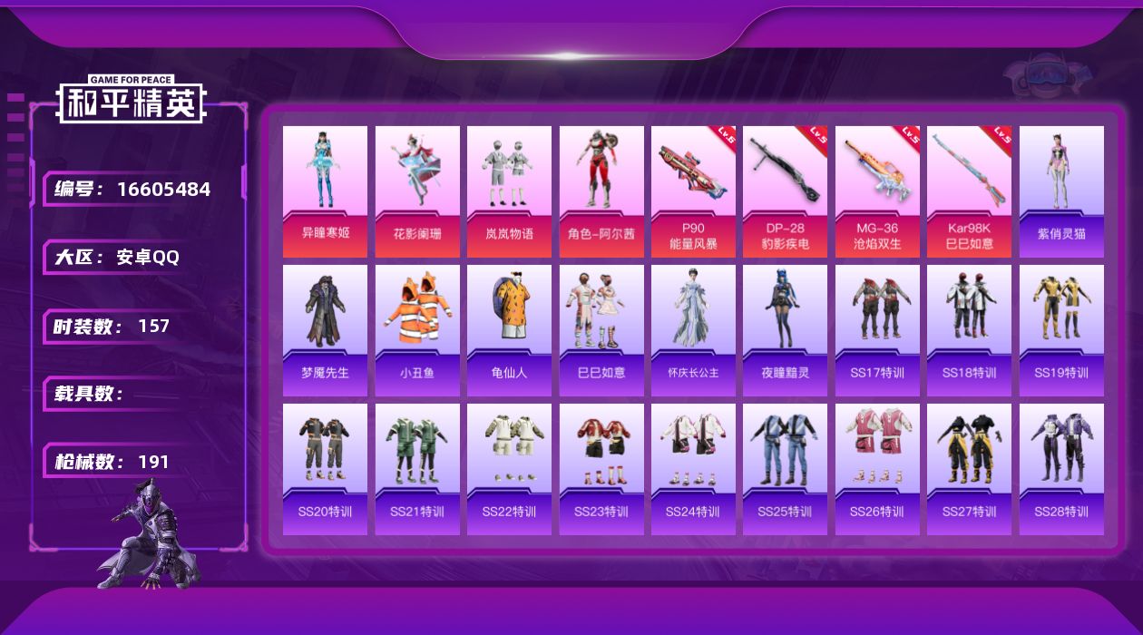 [16605484]【特价出售/店主推荐】安卓 手Q-4粉装-4特效枪-0载具-1粉色飞行器-52725热力值-10王牌印记-157套装-191枪皮【热门品类】:套装-小丑鱼,套装-龟仙人【粉色套装】:粉装-花影阑珊,粉装-岚岚物语,角色-阿尔茜,角色-异瞳寒姬【粉色枪皮等级】:P90-能量风暴(六级),Kar98K-巳巳如意(五级),DP-28-豹影疾电(五级),MG-36-沧焰双生(五级)【粉色枪皮】:P90-能量风暴,Kar98K-巳巳如意,DP-28-豹影疾电,MG-36-沧焰双生