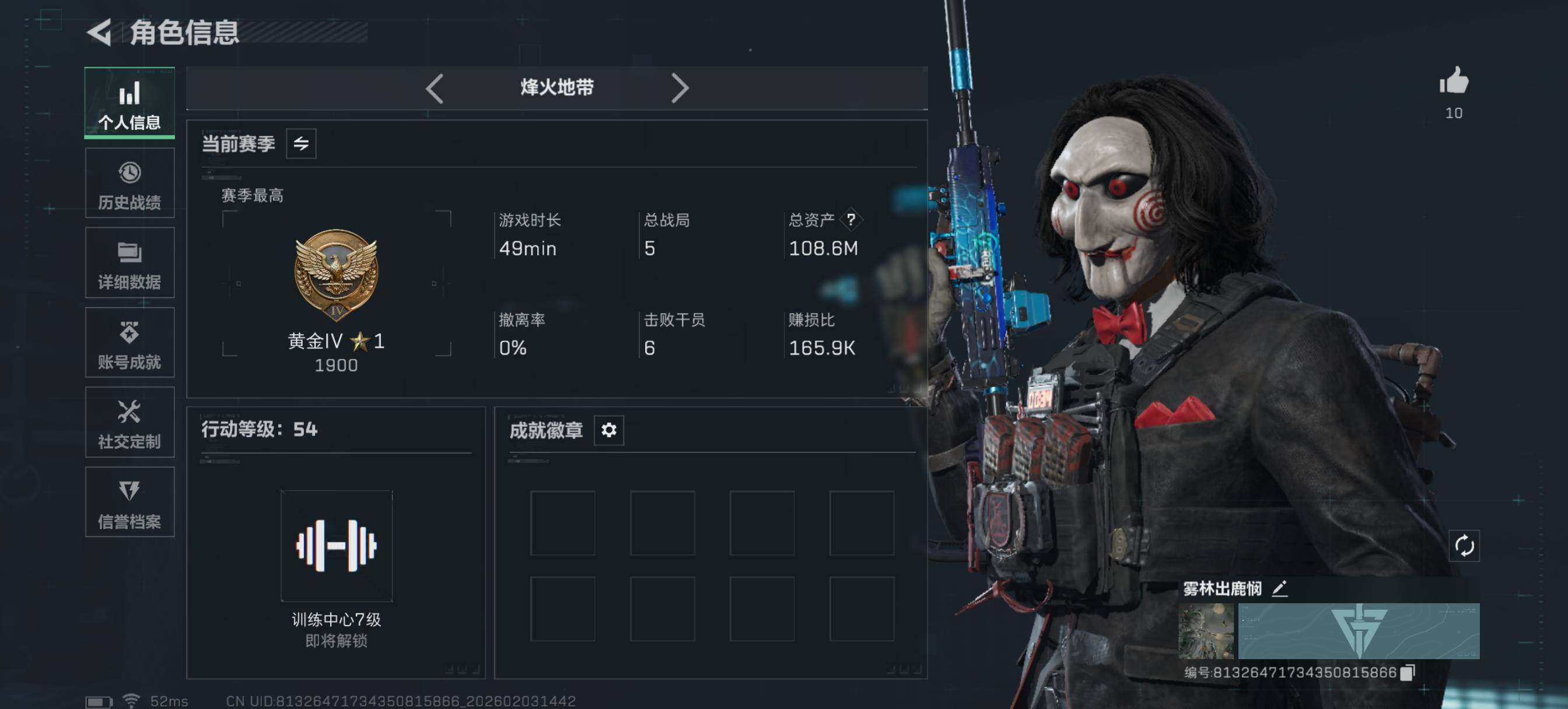 [16363602]【特价出售/店主推荐】108m总资产-30460k哈伏币-54烽火等级-黄金-50战场等级-尉官