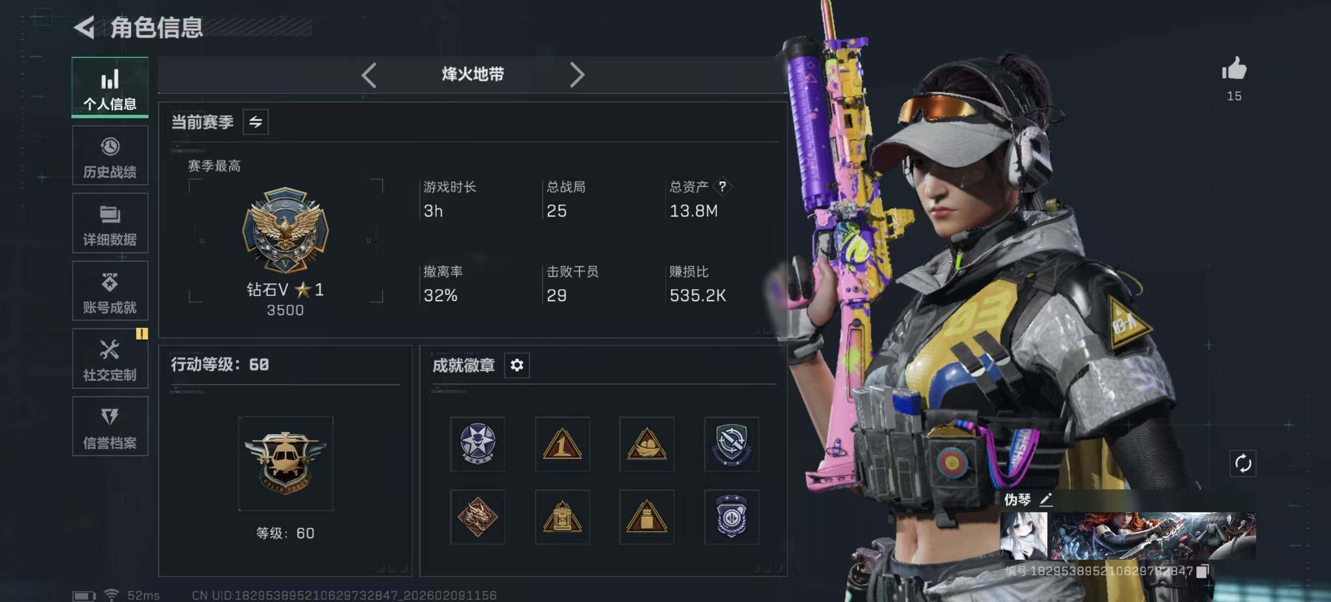 [16607714]【店主推荐捡漏号!可直接换绑】13m总资产-35k哈伏币-60烽火等级-钻石-28战场等级-上等兵