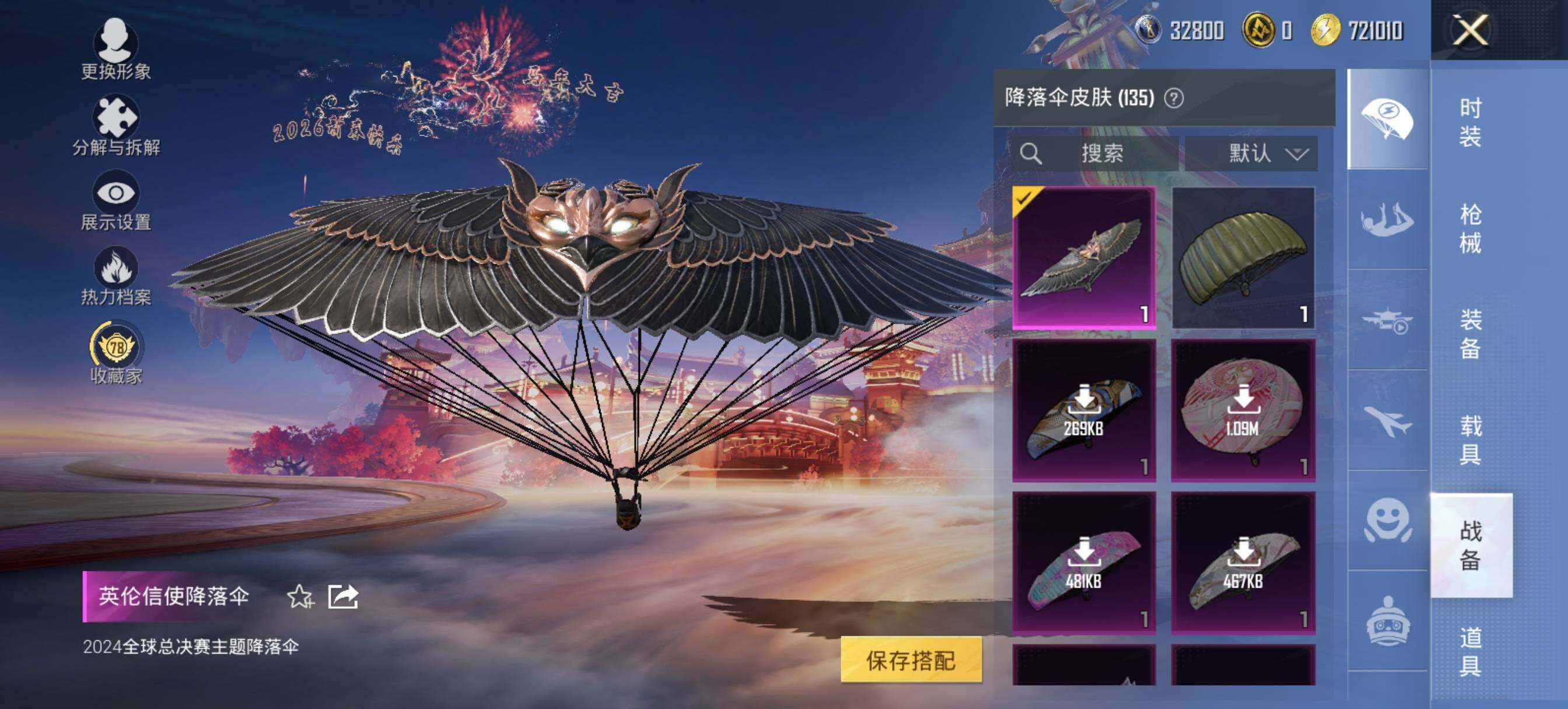 AKM-梦之光华,SCAR-L-纯梦嫁纱,M416-风花雪月,M416-电玩时刻,GROZA-镜光银凌,AUG-暖羊咩咩,Kar98K-伏魔团,Kar98K-巳巳如意