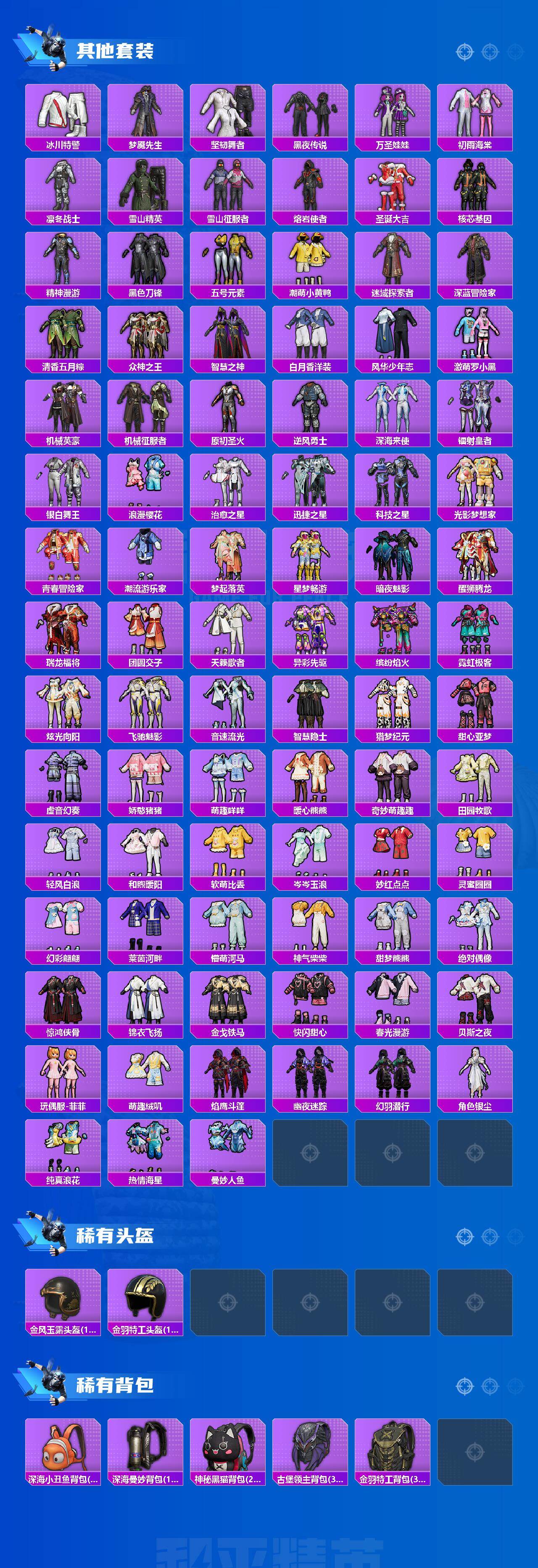 【稀有套装】:套装-龟仙人,套装-巳巳如意,套装-小鸟芋圆,套装-炫彩糖果,套装-雏菊兔兔,套装-萝兰蝴蝶,套装-小熊娃娃,套装-糖糖葫芦,套装-青团波波,套装-棉花软糖,套装-燕燕于飞,套装-鱼渊荷华,角色-海琴烟,套装-紫幽梦,套装-蓝冰羽,角色-申公豹,套装-画境星梦,套装-琴音绮想