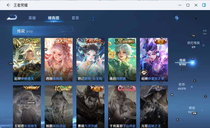 【传说皮肤】:后羿神树通天,西施续相思,妲己愿照众生和,桑启鸣野蒿,貂蝉仲夏夜之梦
