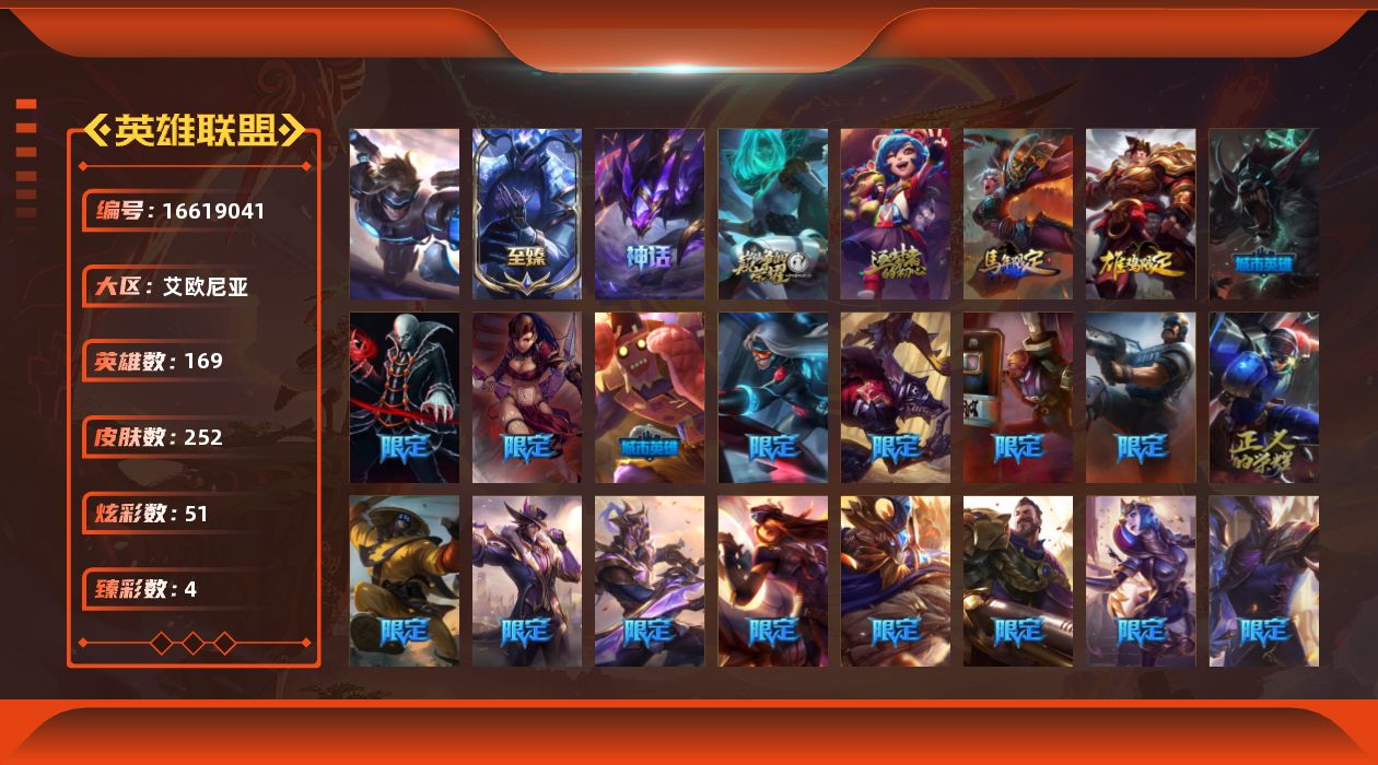 [16619041]可二次【特价出售/店主推荐】未定级段位-169英雄-252皮肤-51炫彩-1终极-5神话-39限定-17传说-64史诗