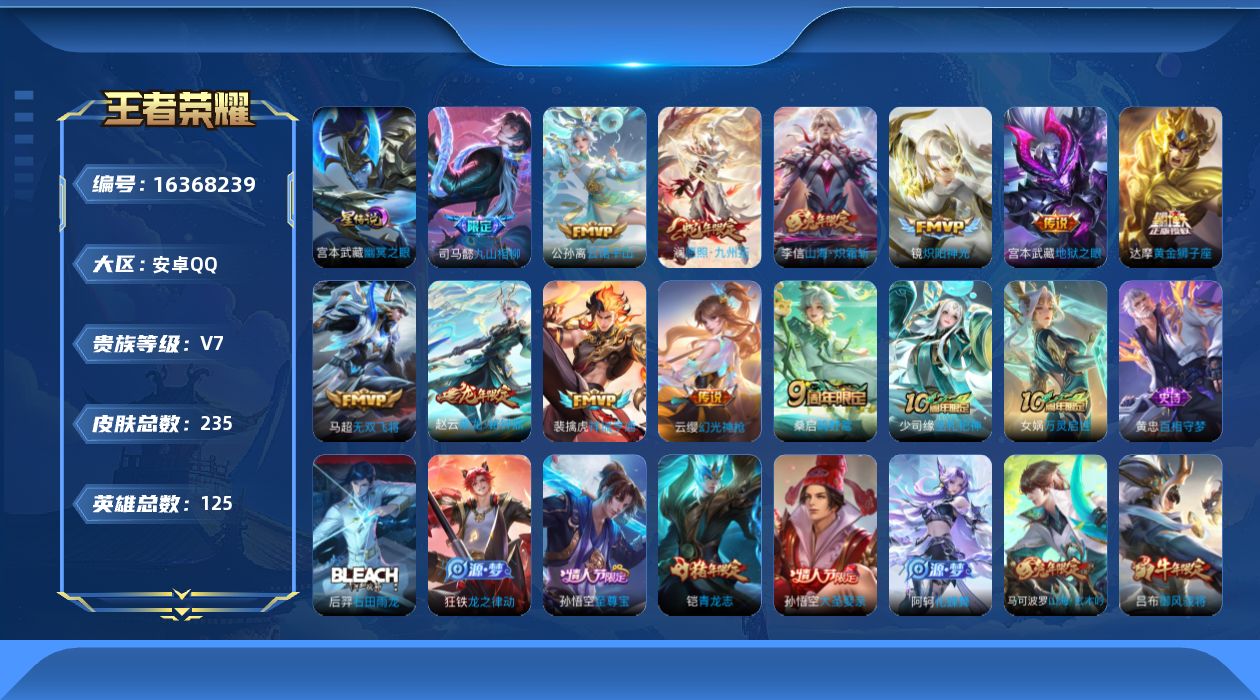 [16368239]【特价出售/店主推荐/32段打野/1市标/3836星币可兑换星元皮肤】:安卓Q-V7-最强王者段位-125英雄-235皮肤-12传说-1星元-61史诗