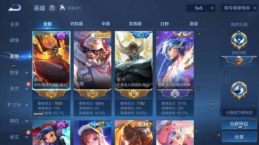 [16630202]【特价出售/店主推荐】游走39段、打野32段、金标廉颇、金标牛魔、金标墨子、10银标,安卓Q-V5-至尊星耀V段位-127英雄-202皮肤-2无双-3珍品传说-1星传说-28传说-65史诗