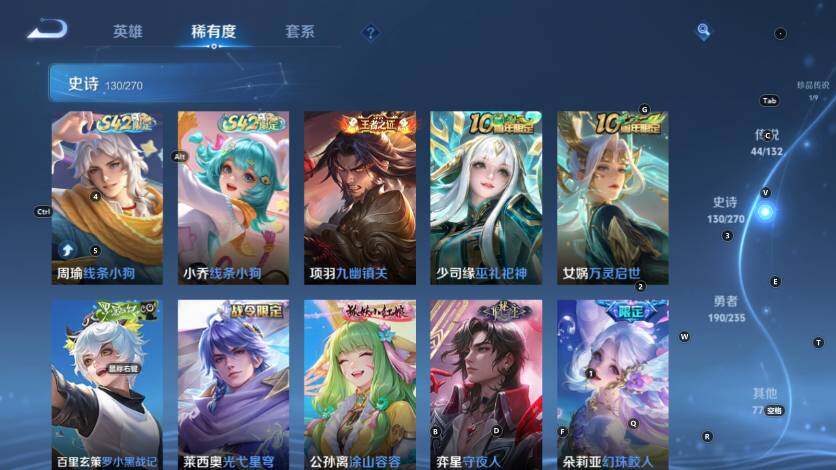 白起狰,太乙真人饕餮,曹操烛龙,米莱狄御霄,牛魔御旌,盾山御銮,夏侯惇朔风刀,明世隐疑决卦,老夫子醍醐杖,鬼谷子原初探秘者,狄仁杰万华元夜,程咬金演武夺筹,钟馗驱傩正仪,苏烈千军破阵,女娲朔望之晖,典韦蓝屏警告,钟馗神迹守卫,鲁班七号狮舞东方,沈梦溪星空之诺,李元芳银河之约,刘邦夺宝奇兵,马可波罗暗影游猎,蒙犽狂想玩偶喵,元歌云间偶戏,弈星混沌棋,达摩沙漠行僧,兰陵王金庭之子,沈梦溪大漠名商,李元芳云中旅人,桑启海盐诗旅,裴擒虎擒涛扼浪,鲁班大师探海日志,张良古海寻踪,项羽苍威无极,镜青焰无极