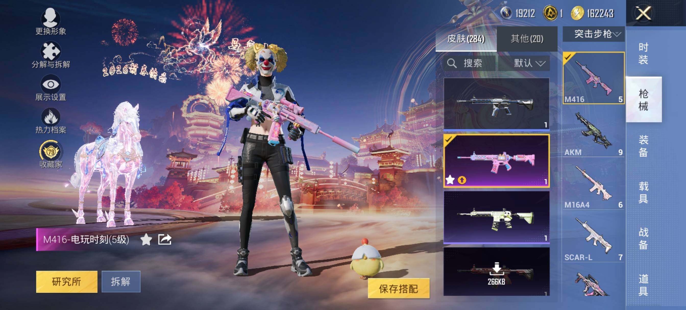 【粉色枪皮】:AKM-魔法神域,AKM-幽焰骑士,SCAR-L-纯梦嫁纱,M416-电玩时刻,GROZA-镜光银凌,AUG-暖羊咩咩,M762-青锋波束,UMP45-量子极限,UMP45-宇宙意志,Vector-环太平洋,Kar98K-巳巳如意,M24-镜域双华,DP-28-豹影疾电