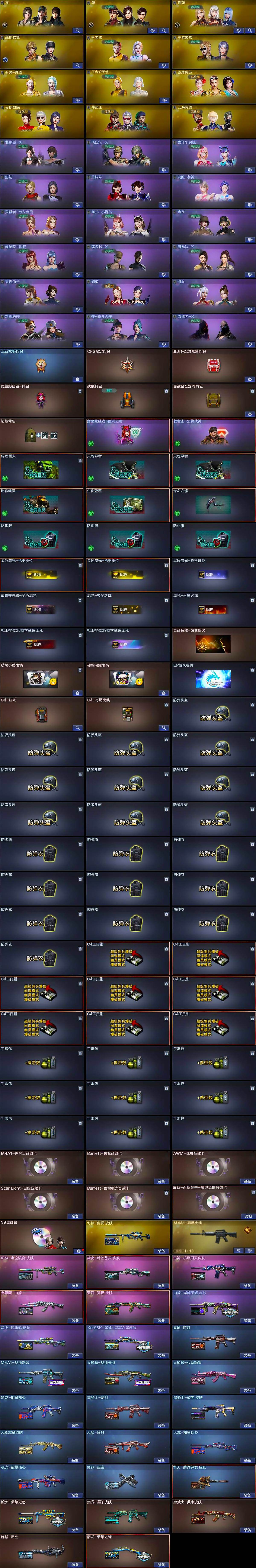 【音效卡】:M4A1-黑骑士音效卡,Barrett-极光音效卡,AWM-裁决音效卡,Scar Light-白虎音效卡,N9语音包,Barrett-碧霄极光音效卡,炼狱-百战金芒-庆典舞曲音效卡
