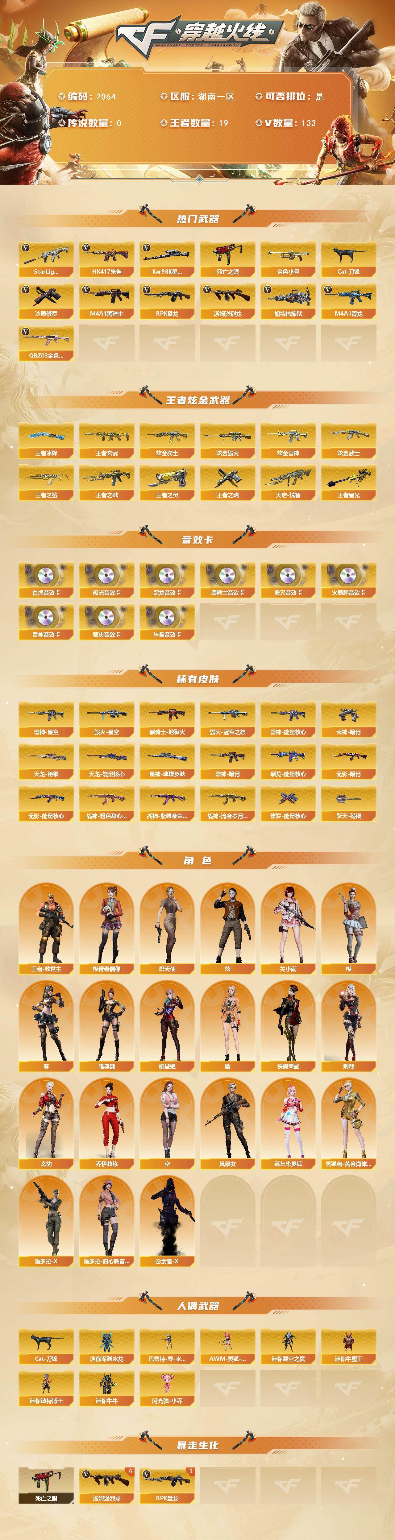 [16639992]湖南一区-146V-19王者武器数-5炫金武器数
